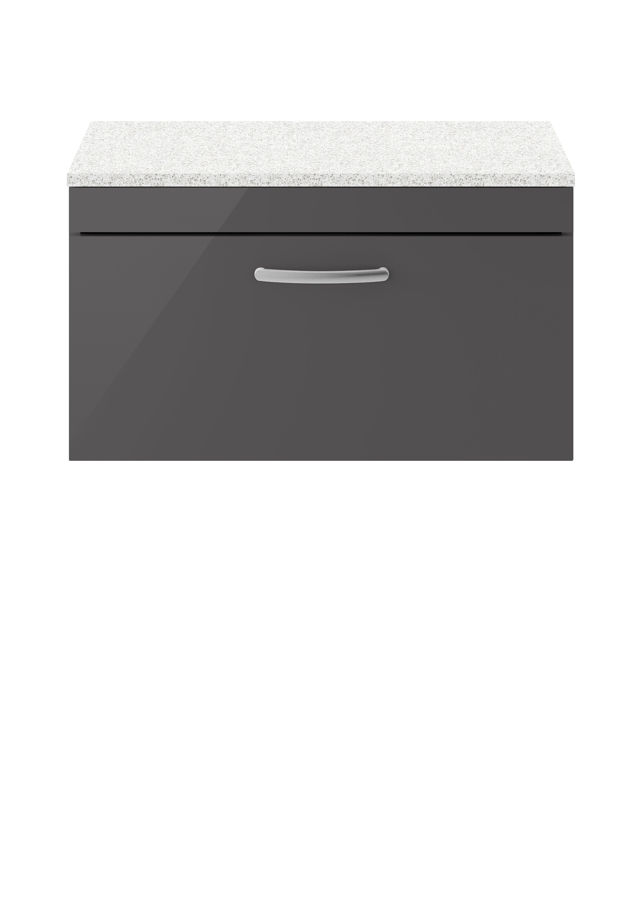 nuie Athena Wall Hung Single Drawer Vanity With Sparkling White Worktop 800mm - Gloss Grey