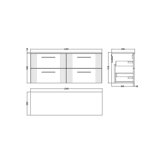 Deco 1200mm Wall Hung 4-Drawer Vanity & Worktop