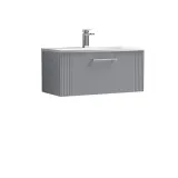 Part fluted design ideal for a striking art deco styled bathroom. Stunning satin finish. Soft close doors and drawers ensures peace ensues throughout your home. Supplied rigid for easy installation. Laminate worktop for use with vessel basin (sold separately).