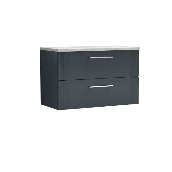 nuie Deco 800mm Wall Hung 2-Drawer Vanity & Laminate Top - Satin Anthracite