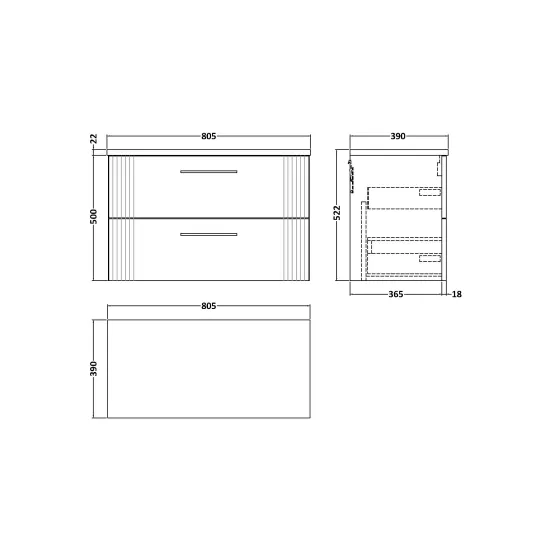 Deco 800mm Wall Hung 2-Drawer Vanity & Laminate Top