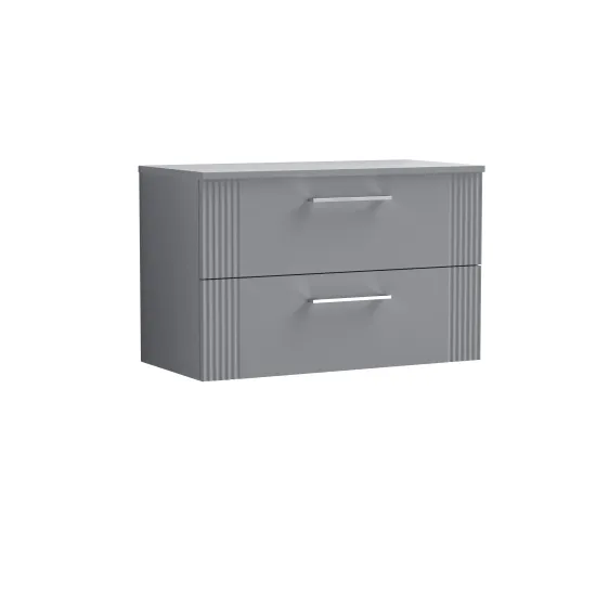 nuie Deco 800mm Wall Hung 2-Drawer Vanity & Worktop - Satin Grey