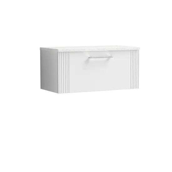 nuie Deco 800mm Wall Hung Single Drawer Vanity & Laminate Top - Satin White