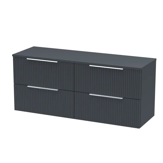 Hudson Reed Fluted 1200mm Wall Hung 4-Drawer Vanity and Worktop - Satin Anthracite