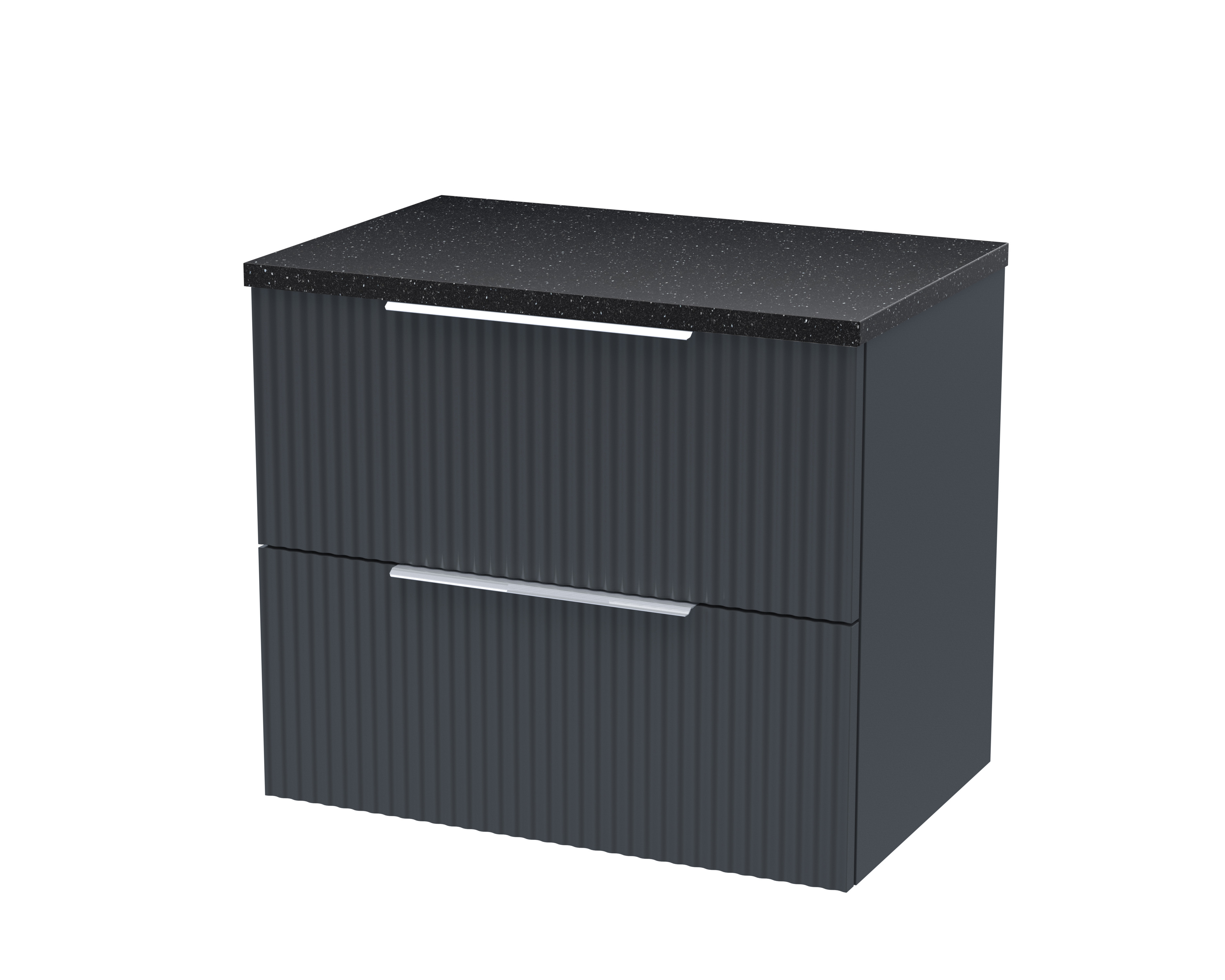 Hudson Reed Fluted 600mm Wall Hung 2-Drawer Vanity and Laminate Top - Satin Anthracite