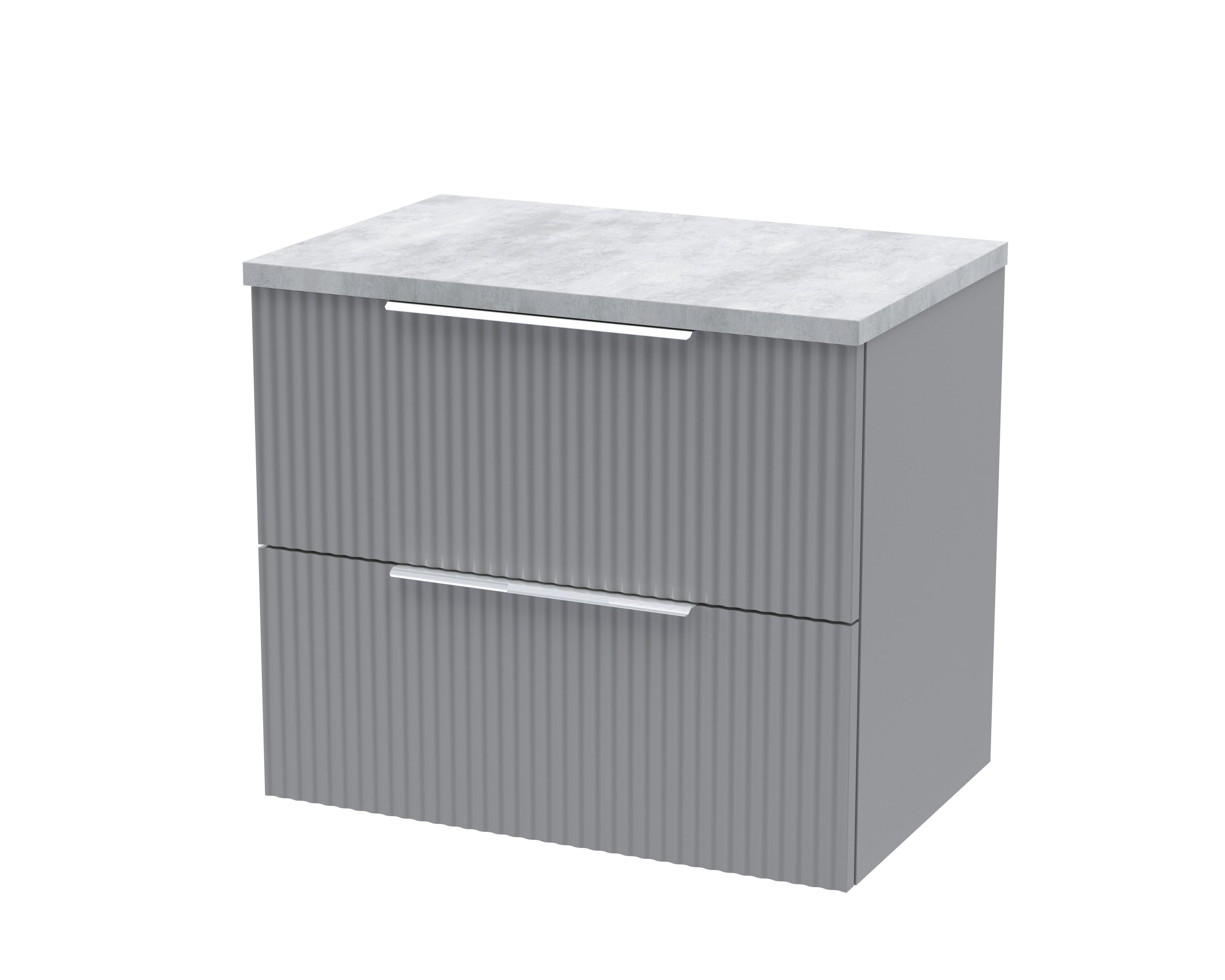Hudson Reed Fluted 600mm Wall Hung 2-Drawer Vanity and Laminate Top - Satin Grey