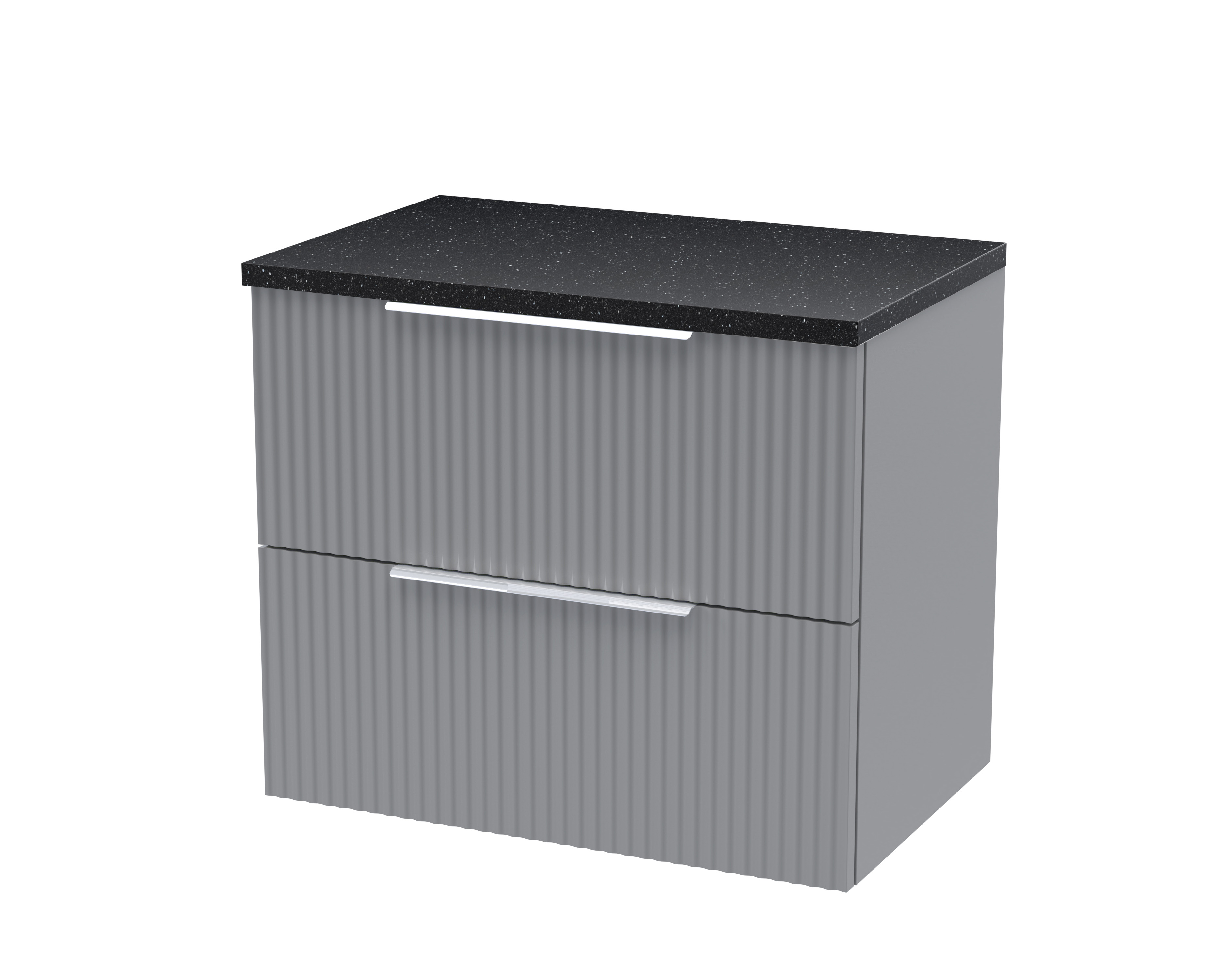 Hudson Reed Fluted 600mm Wall Hung 2-Drawer Vanity and Laminate Top - Satin Grey