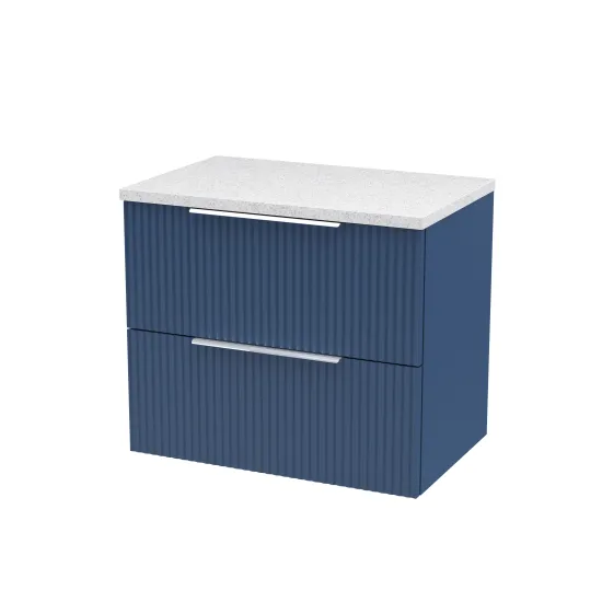 Hudson Reed Fluted 600mm Wall Hung 2-Drawer Vanity and Laminate Top - Satin Blue