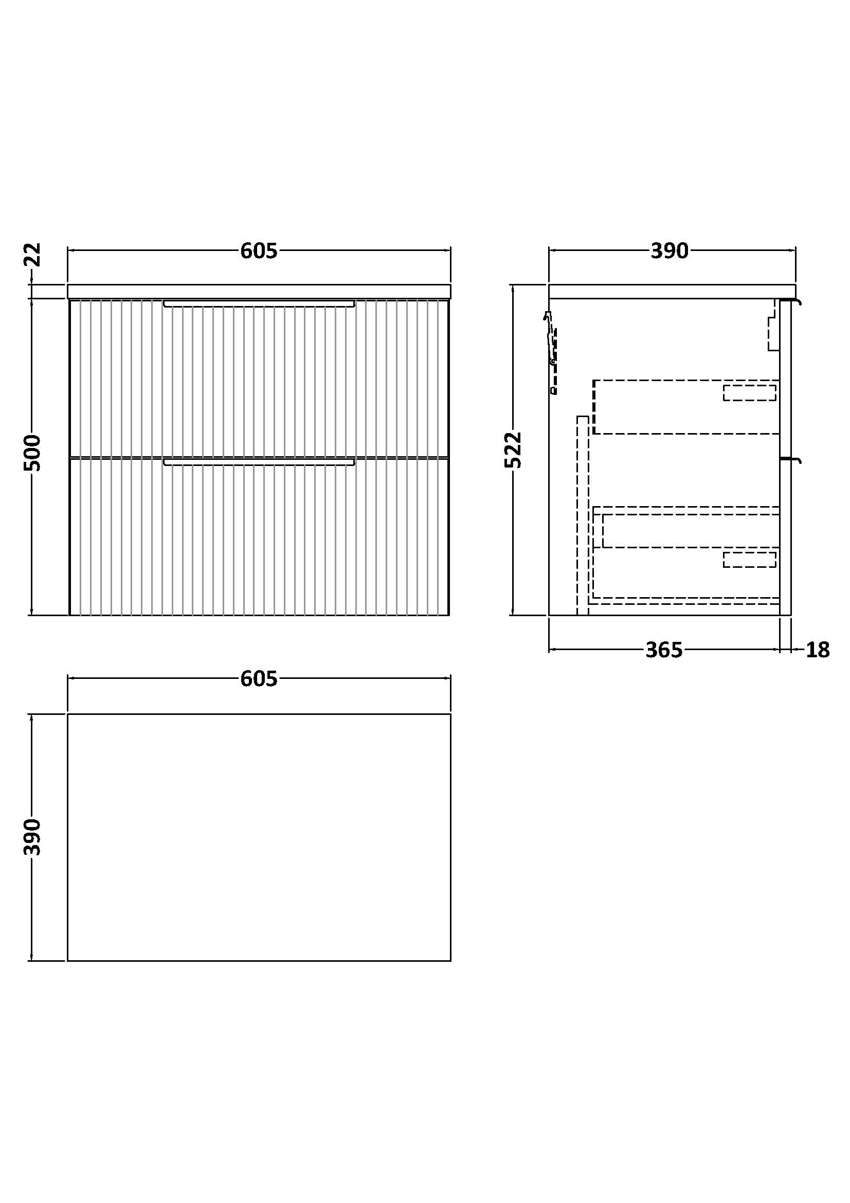 Fluted 600mm Wall Hung 2-Drawer Vanity and Laminate Top