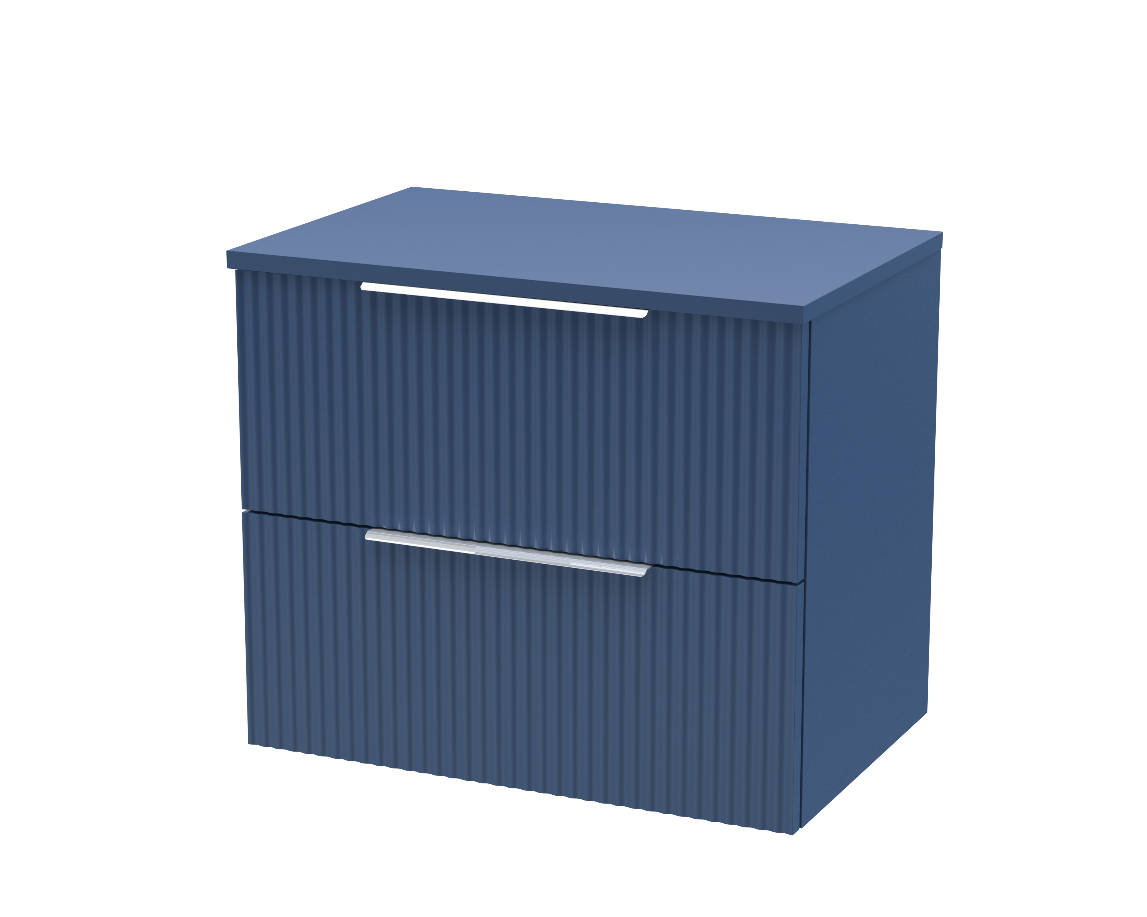 Hudson Reed Fluted 600mm Wall Hung 2-Drawer Vanity and Worktop - Satin Blue