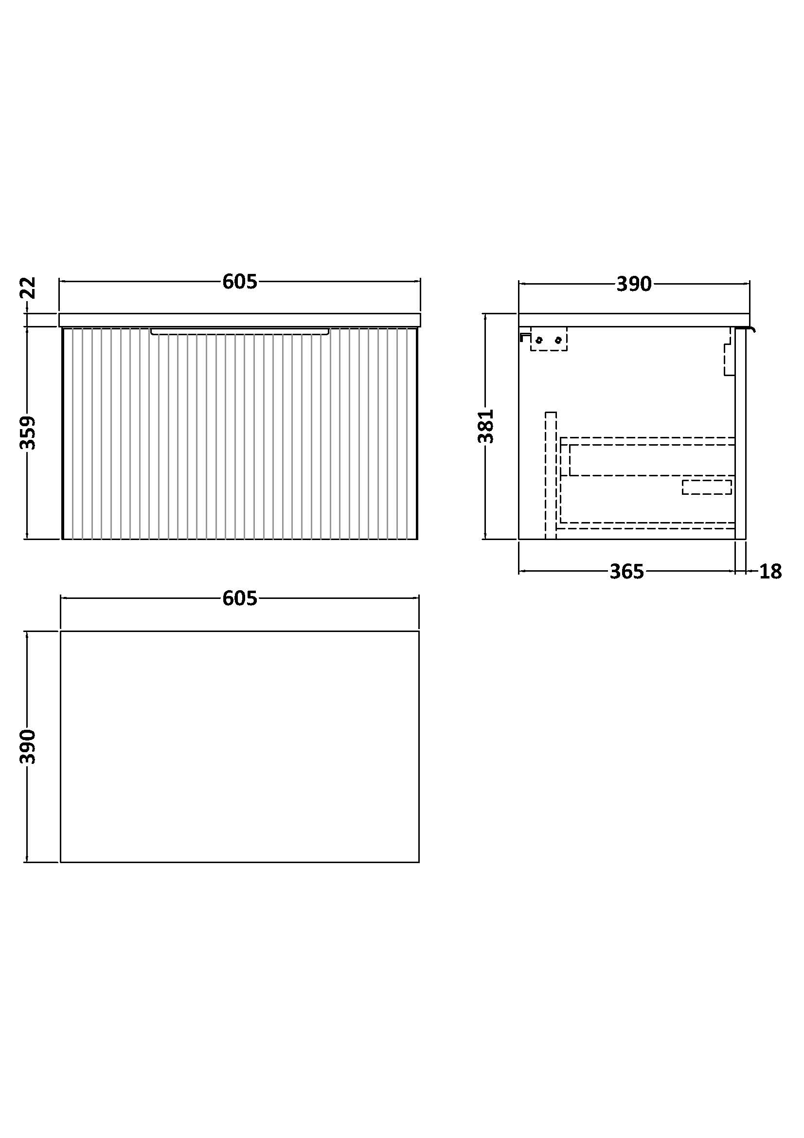 Fluted 600mm Wall Hung Single Drawer Vanity and Laminate Top