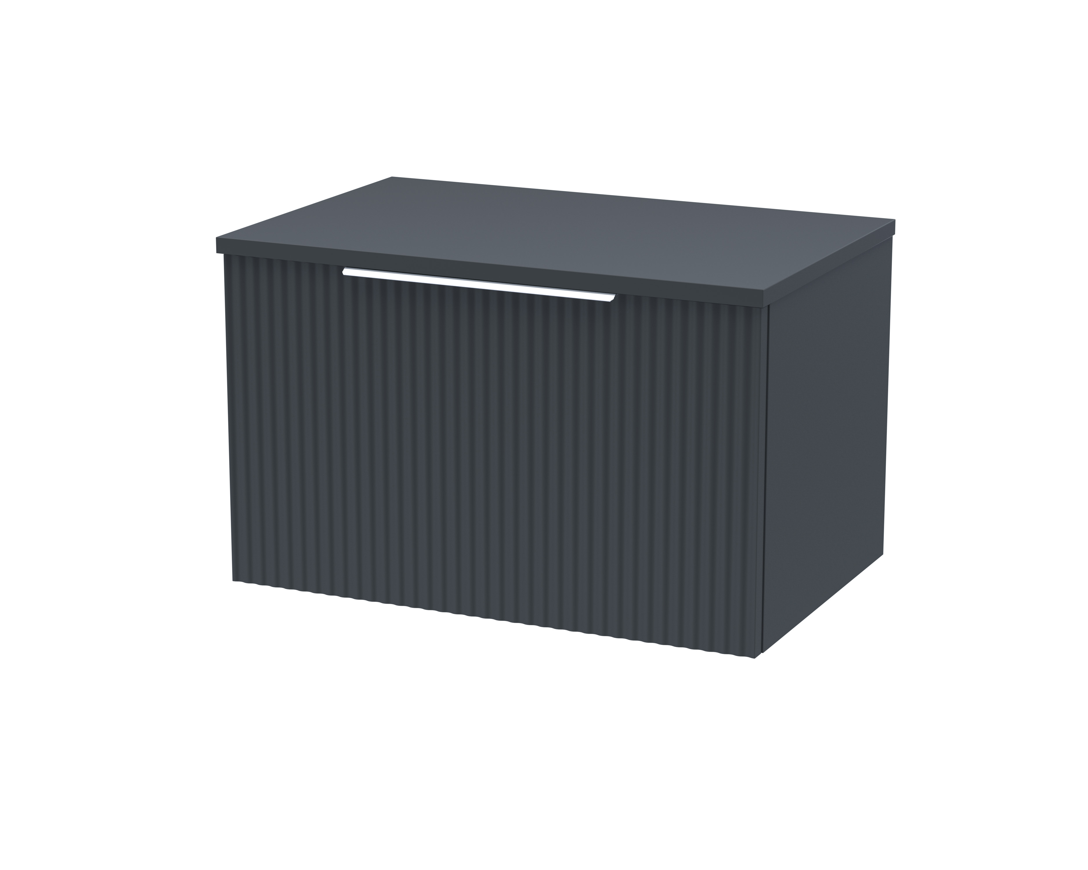 Hudson Reed Fluted 600mm Wall Hung Single Drawer Vanity and Worktop - Satin Anthracite