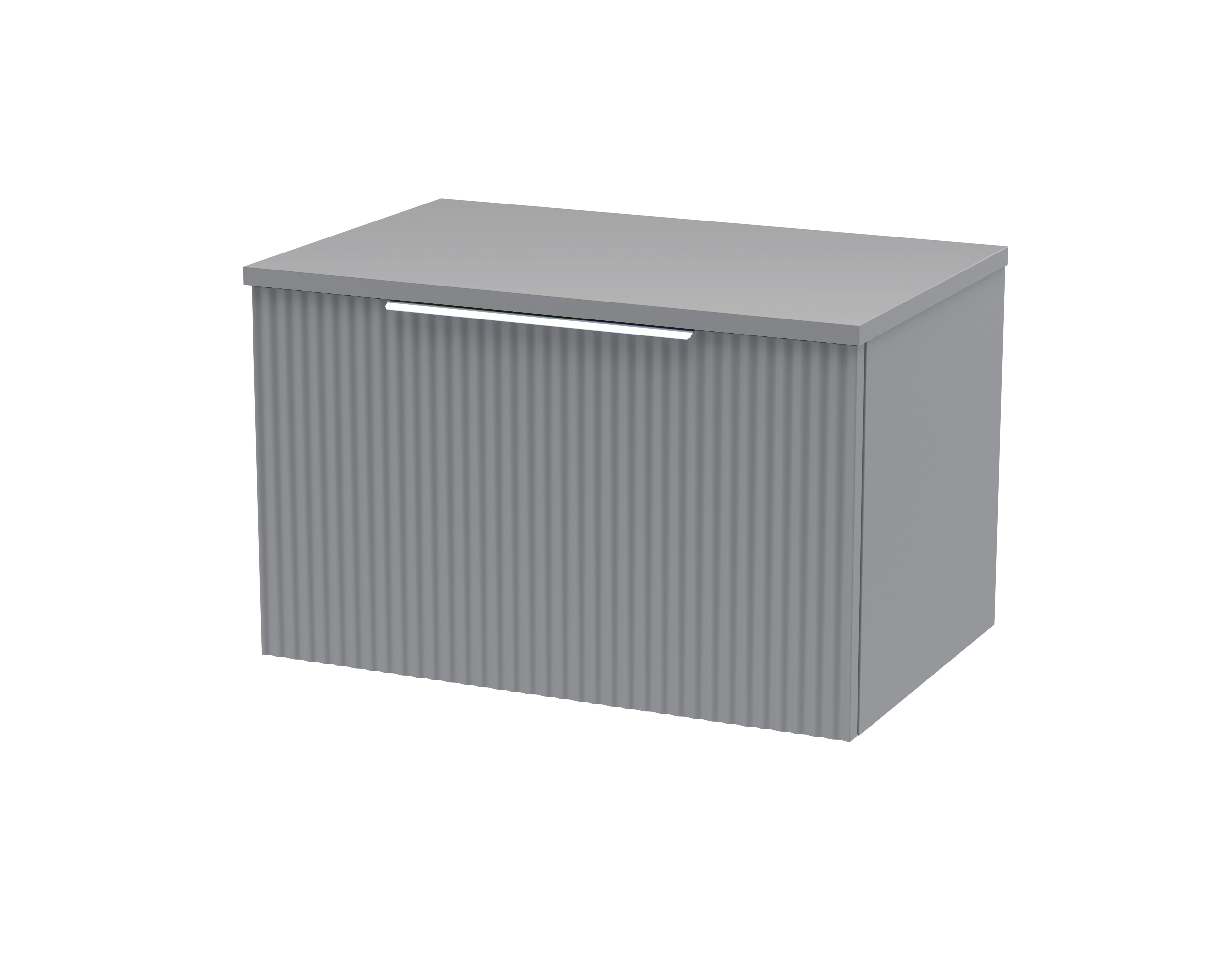 Hudson Reed Fluted 600mm Wall Hung Single Drawer Vanity and Worktop - Satin Grey