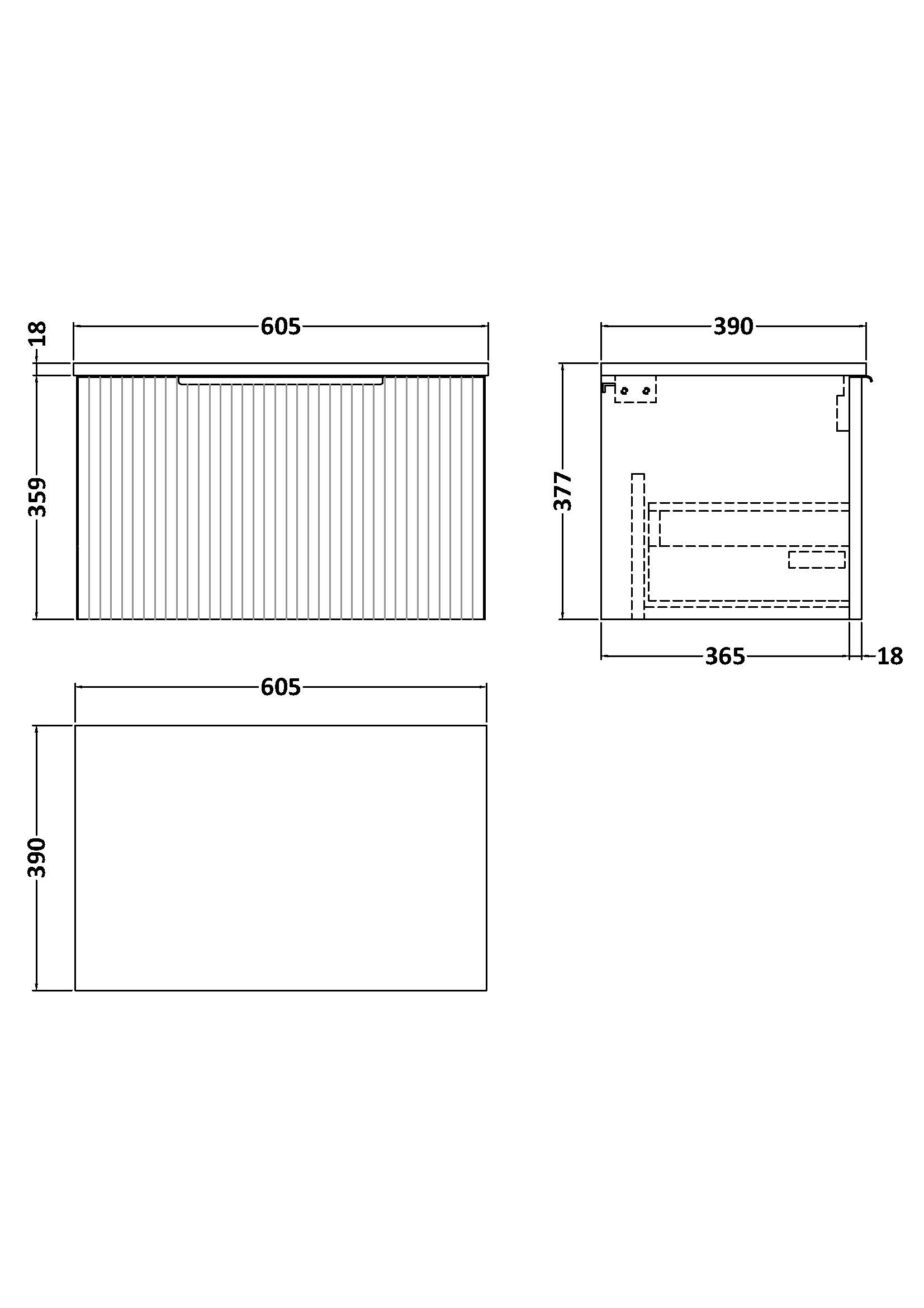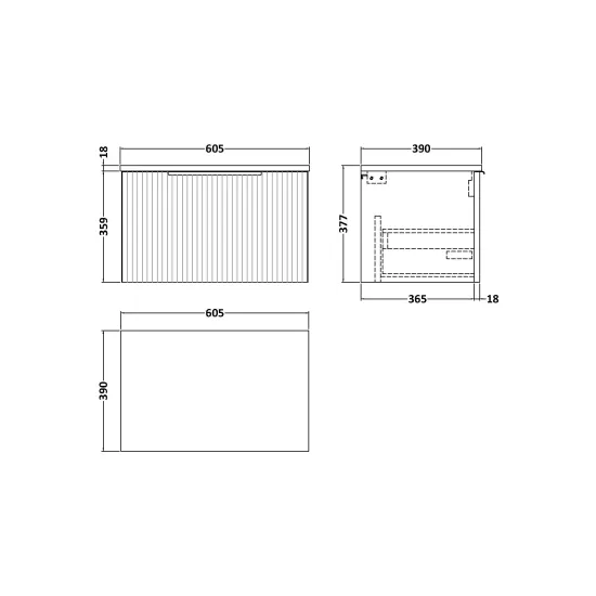 Fluted 600mm Wall Hung Single Drawer Vanity and Worktop