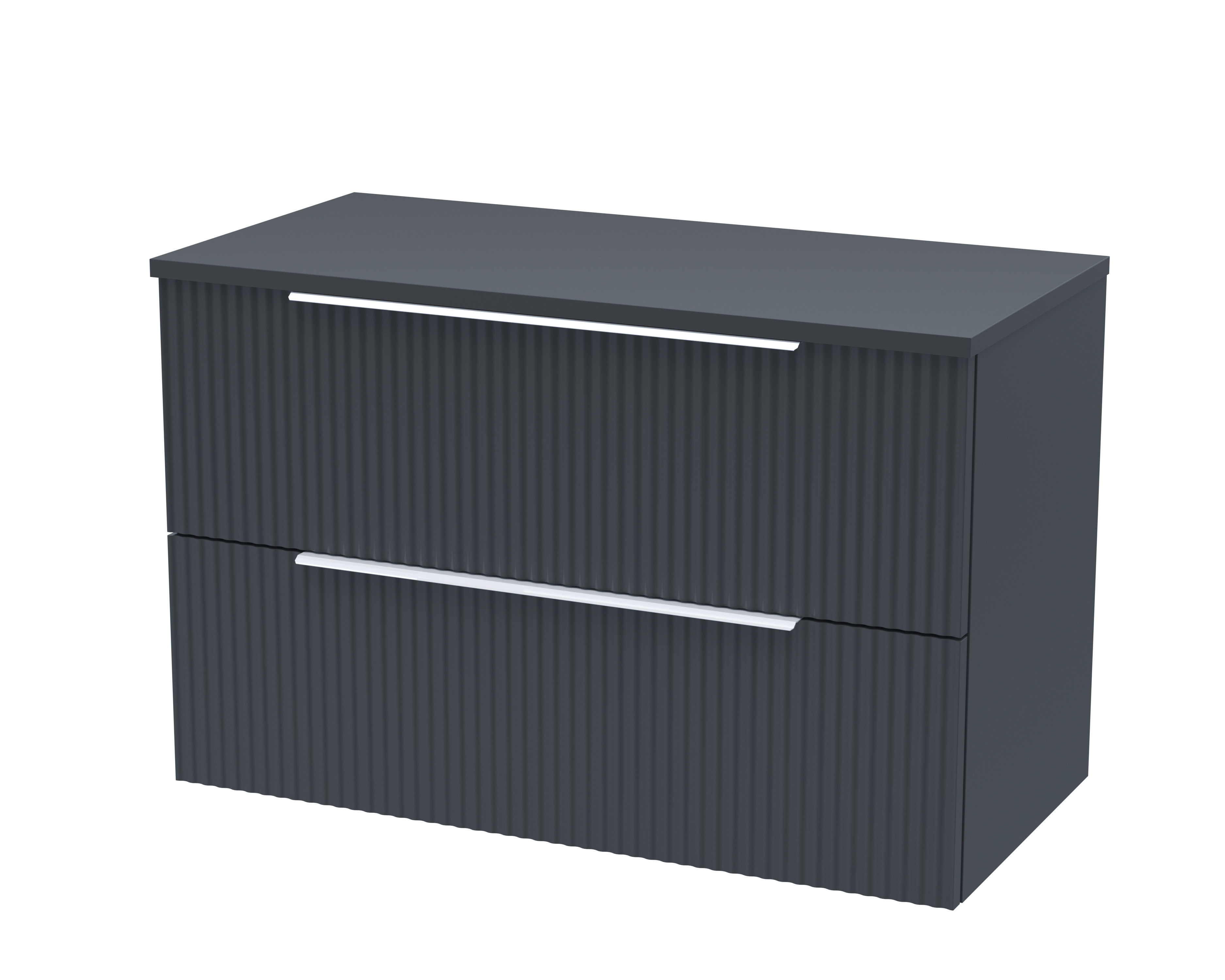 Hudson Reed Fluted 800mm Wall Hung 2-Drawer Vanity and Worktop - Satin Anthracite