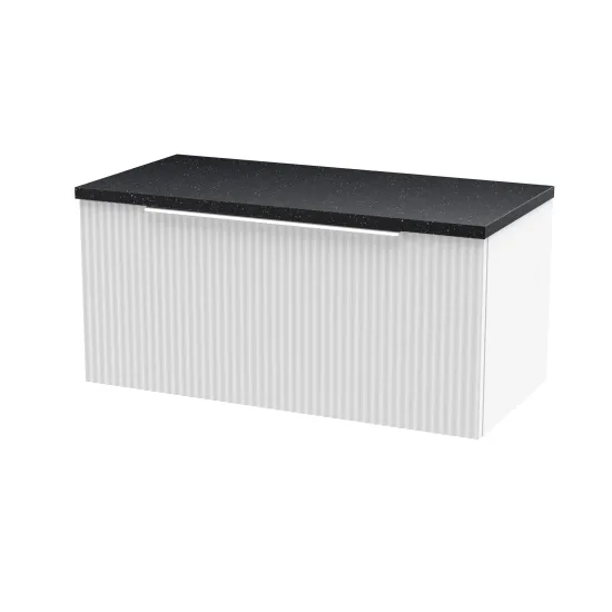 Hudson Reed Fluted 800mm Wall Hung Single Drawer Vanity and Laminate Top - Satin White