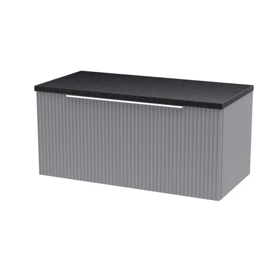 Hudson Reed Fluted 800mm Wall Hung Single Drawer Vanity and Laminate Top - Satin Grey