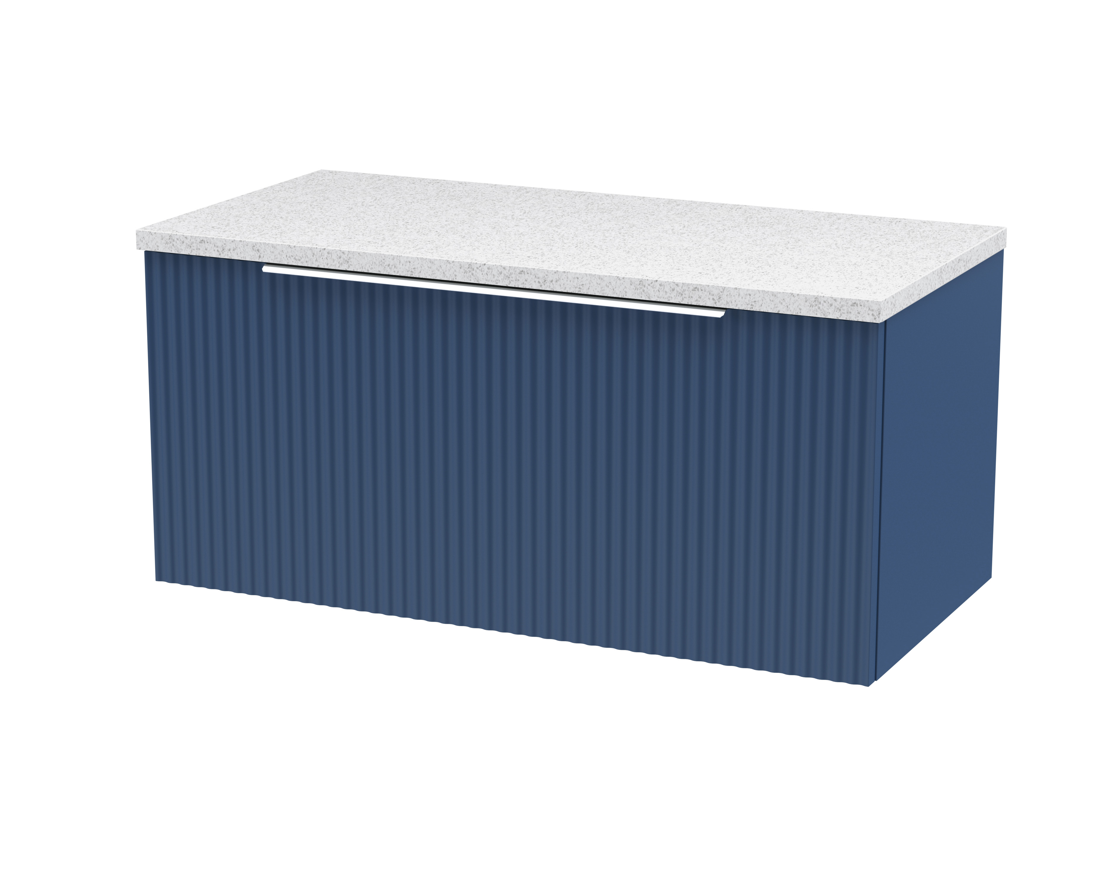 Hudson Reed Fluted 800mm Wall Hung Single Drawer Vanity and Laminate Top - Satin Blue