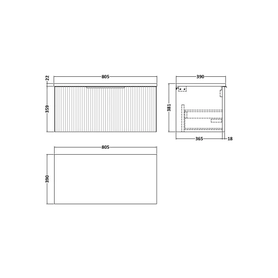 Fluted 800mm Wall Hung Single Drawer Vanity and Laminate Top