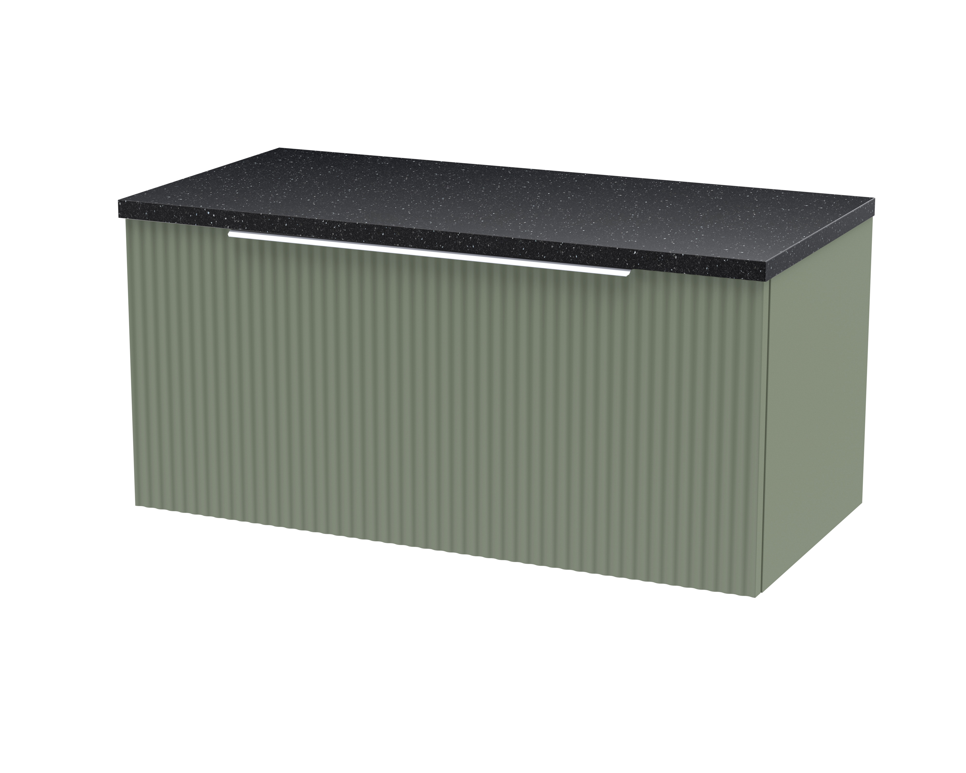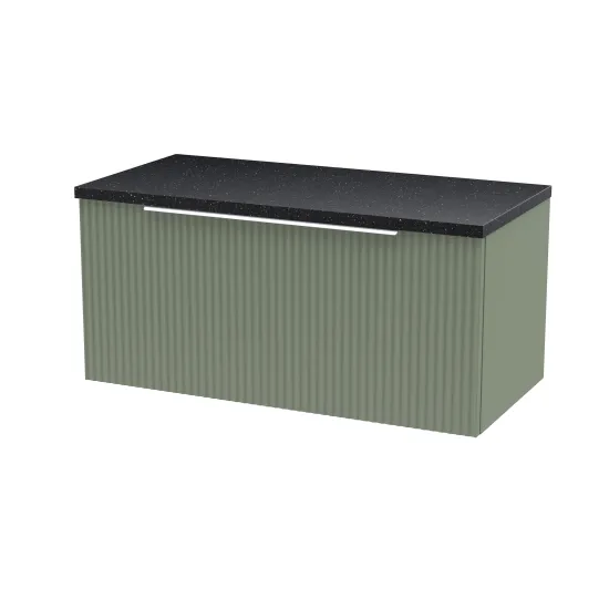 Hudson Reed Fluted 800mm Wall Hung Single Drawer Vanity and Laminate Top - Satin Green