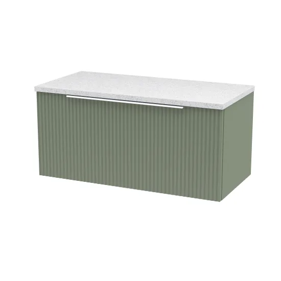 Hudson Reed Fluted 800mm Wall Hung Single Drawer Vanity and Laminate Top - Satin Green