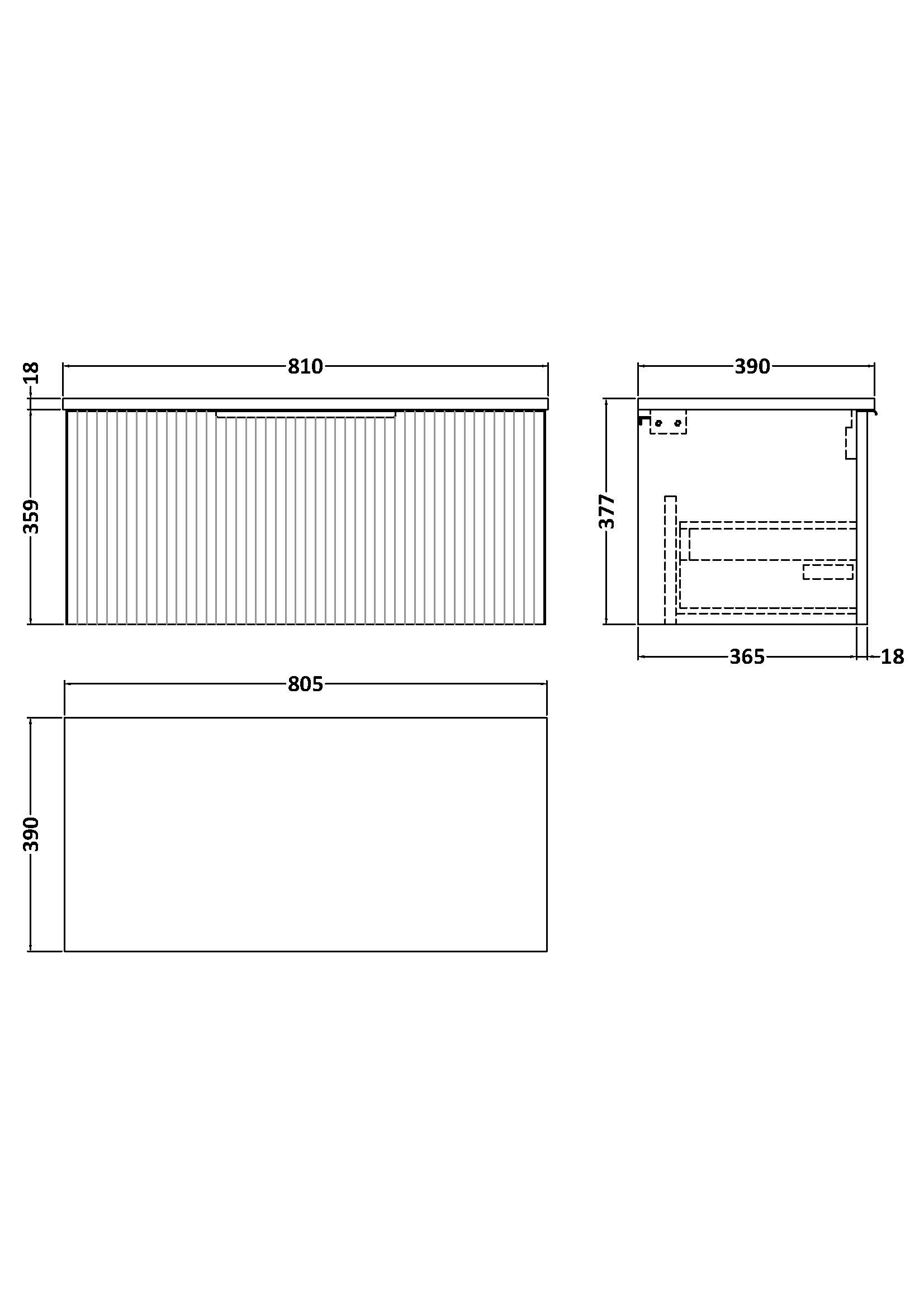 Fluted 800mm Wall Hung Single Drawer Vanity and Worktop