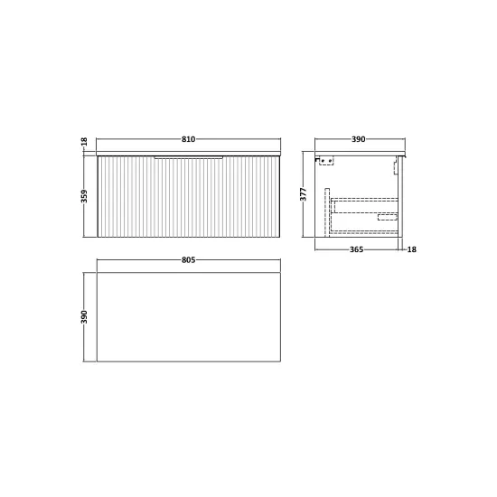 Fluted 800mm Wall Hung Single Drawer Vanity and Worktop