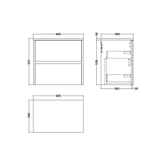Havana Wall Hung 2 Drawer Unit & Colour Match Worktop, 600mm