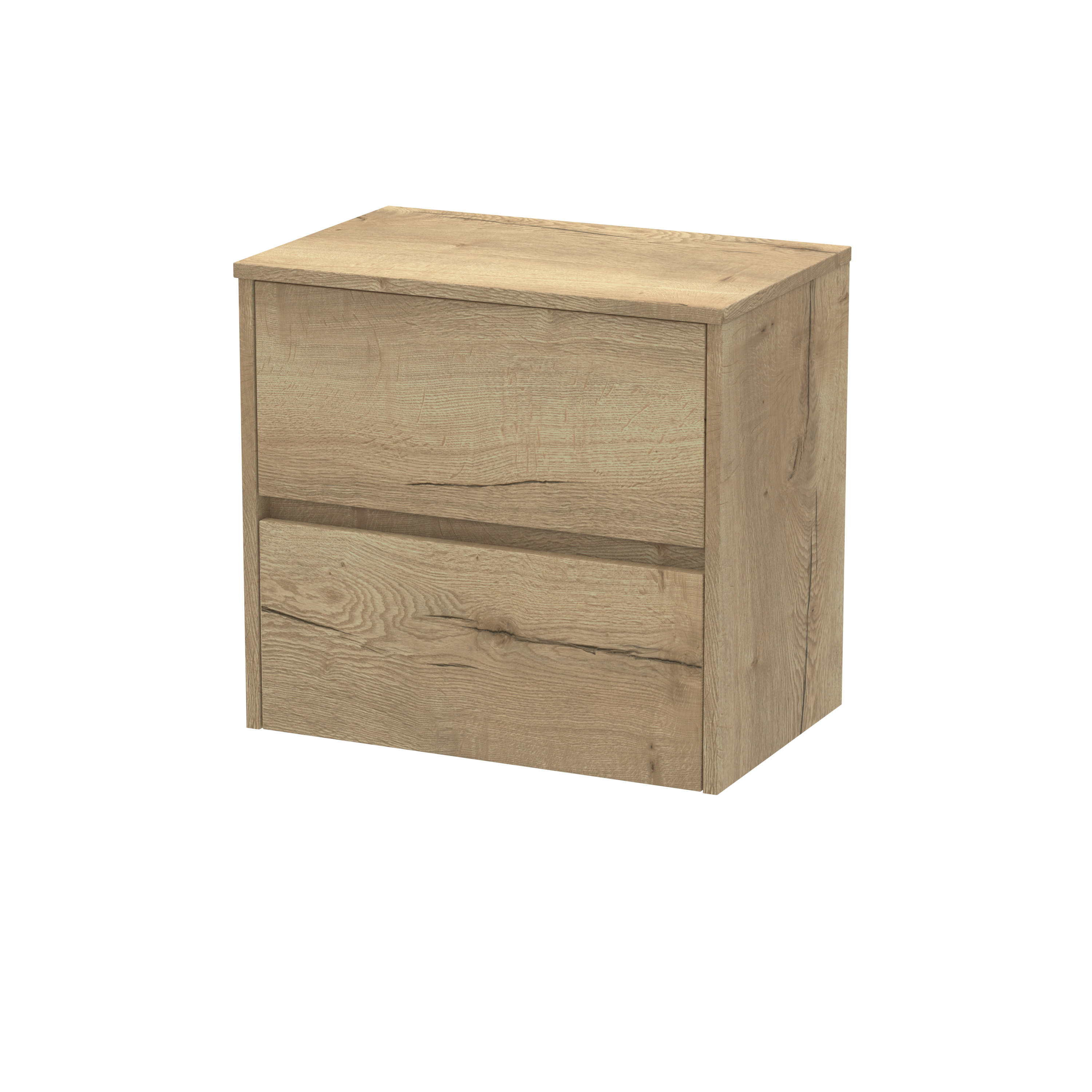 Hudson Reed Havana Wall Hung 2 Drawer Unit & Colour Match Worktop, 600mm - Autumn Oak