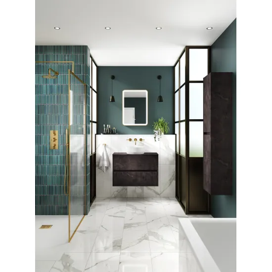 This sleek wall hung unit creates more space in your bathroom giving the illusion of a bigger bathroom