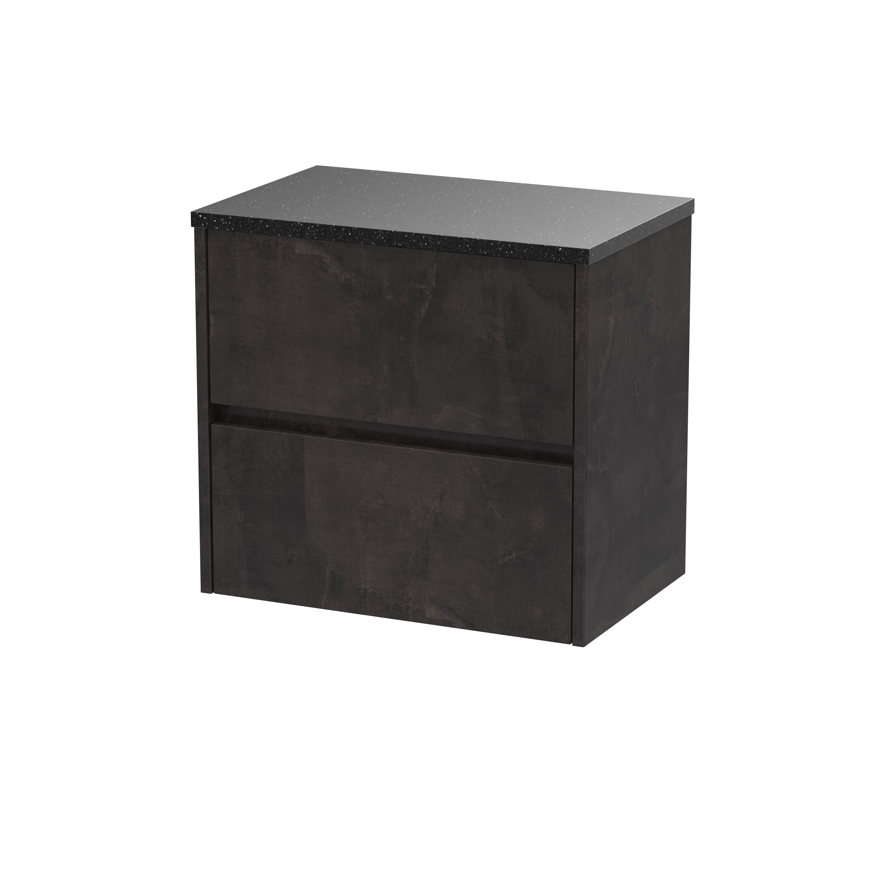 Hudson Reed Havana Wall Hung 2 Drawer Unit & Laminate Worktop, 600mm - Metallic Slate/Sparkle Black