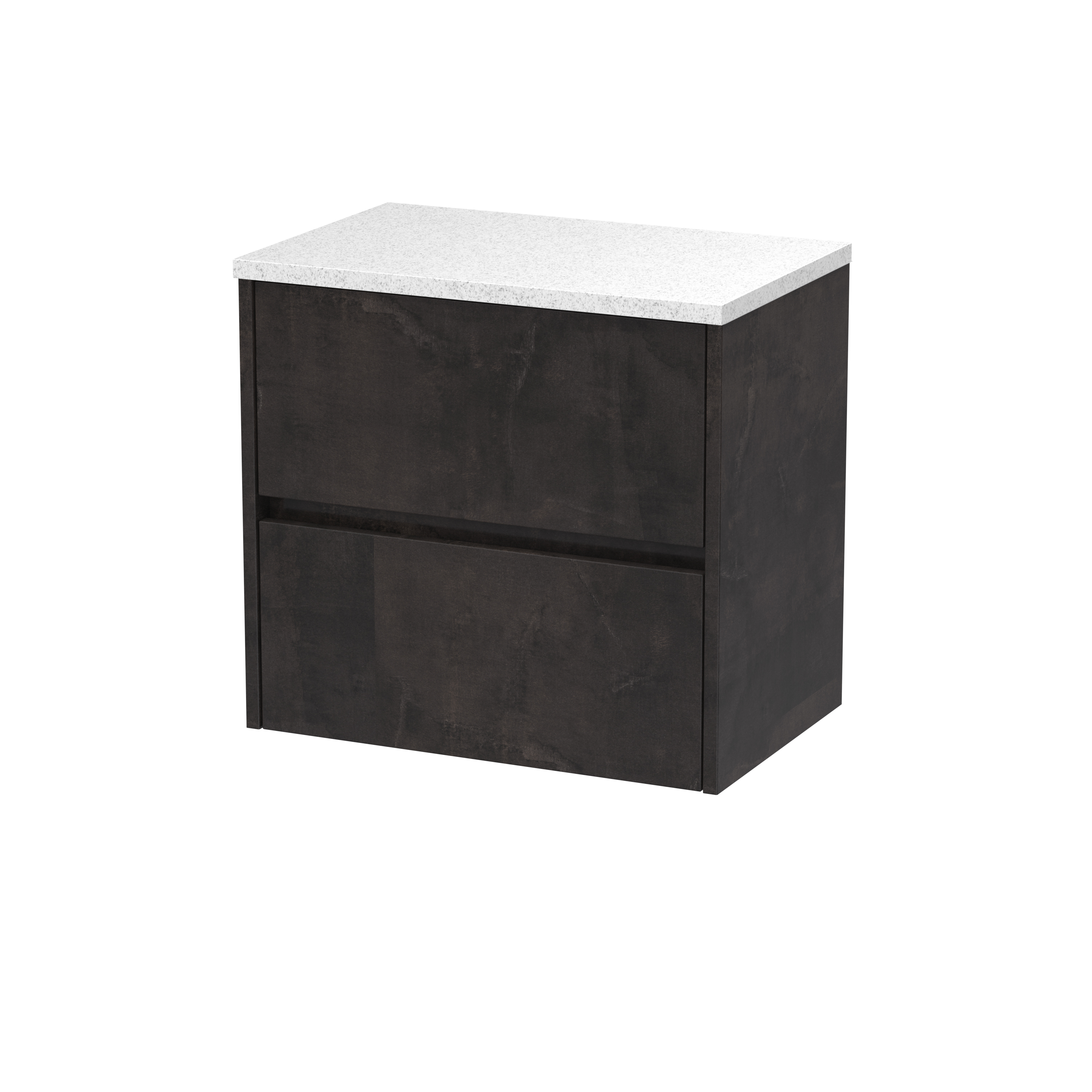 Hudson Reed Havana Wall Hung 2 Drawer Unit & Laminate Worktop, 600mm - Metallic Slate/Sparkle White