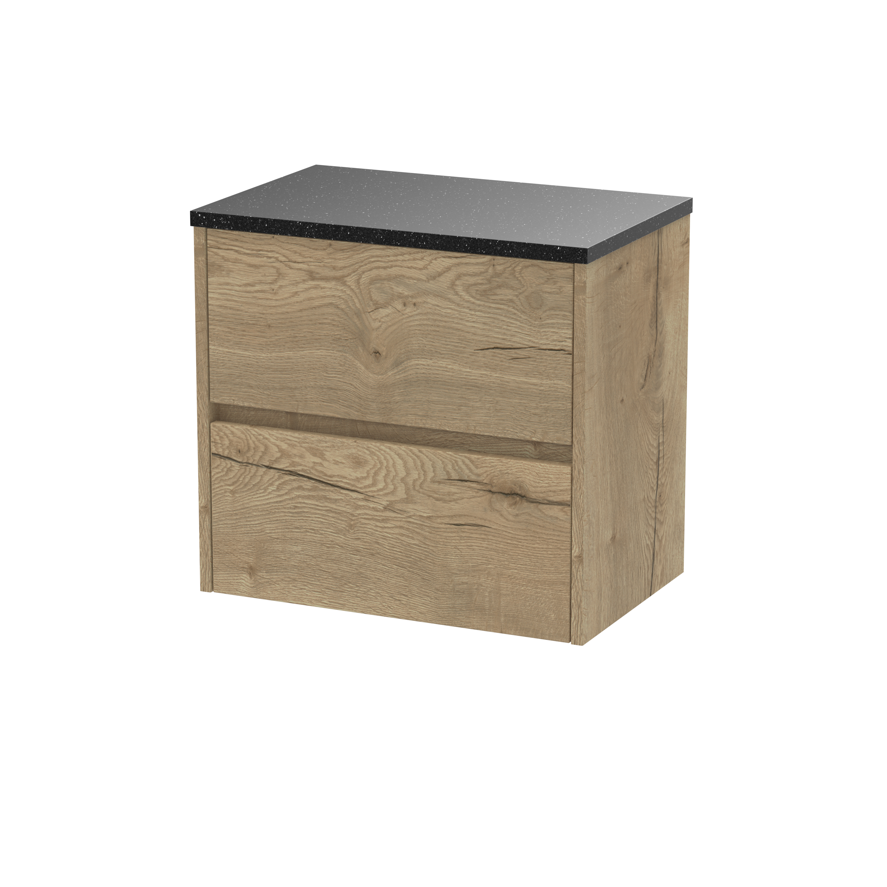 Hudson Reed Havana Wall Hung 2 Drawer Unit & Laminate Worktop, 600mm - Autumn Oak/Sparkle Black