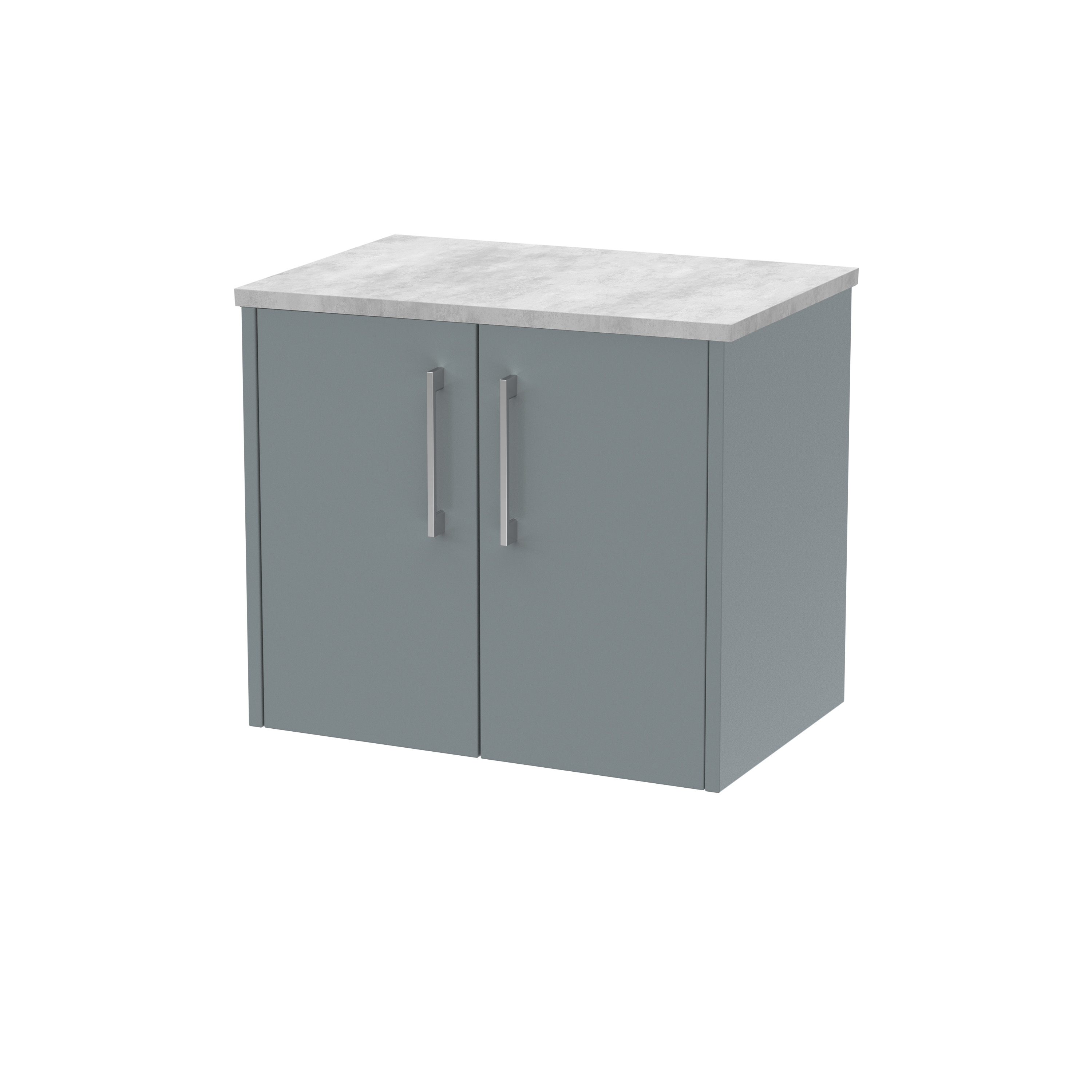 Hudson Reed Juno 600mm Wall Hung 2-Door Vanity & Laminate Top - Coastal Grey