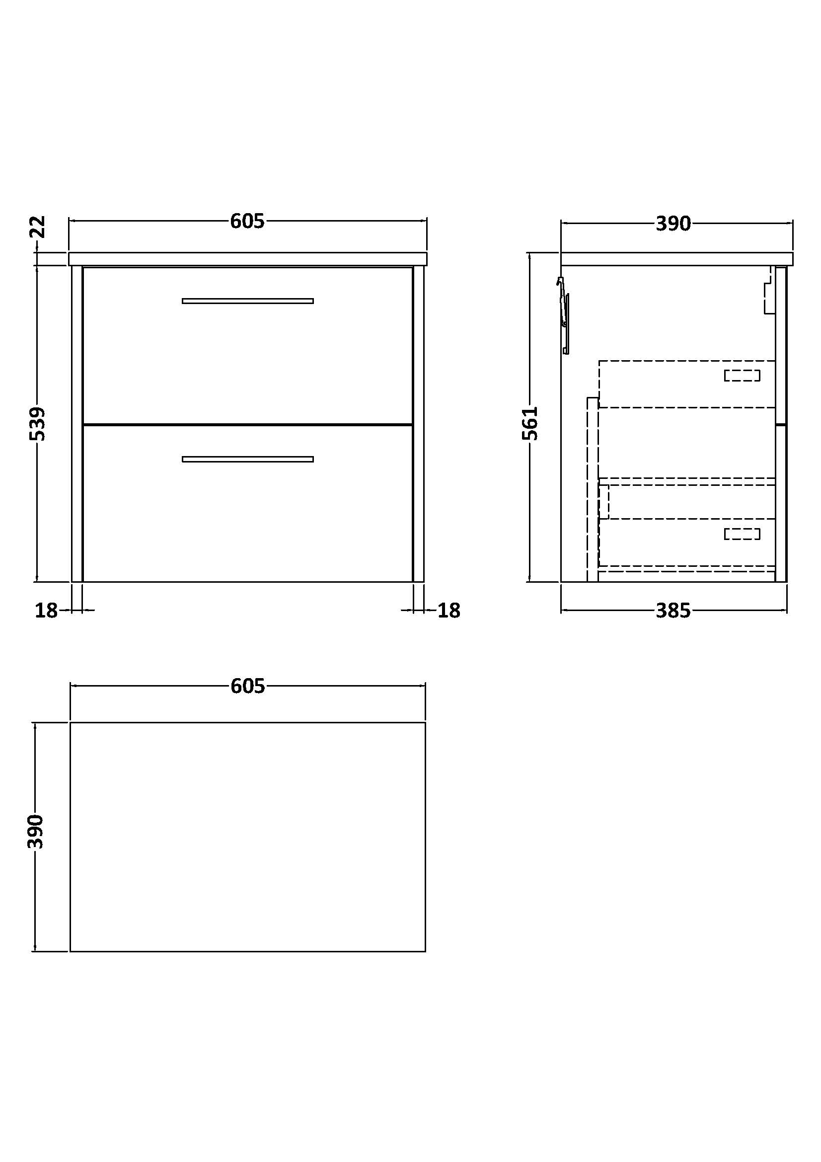Juno 600mm Wall Hung 2-Drawer Vanity & Laminate Top