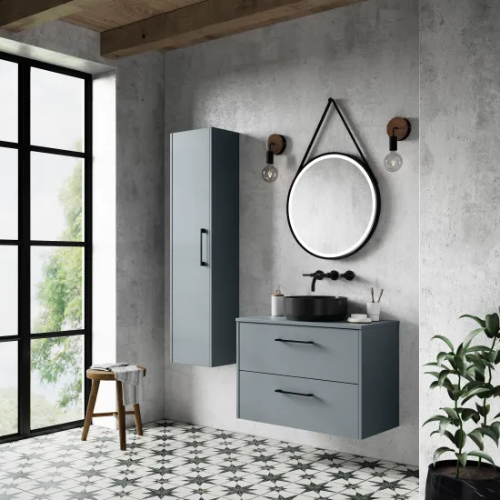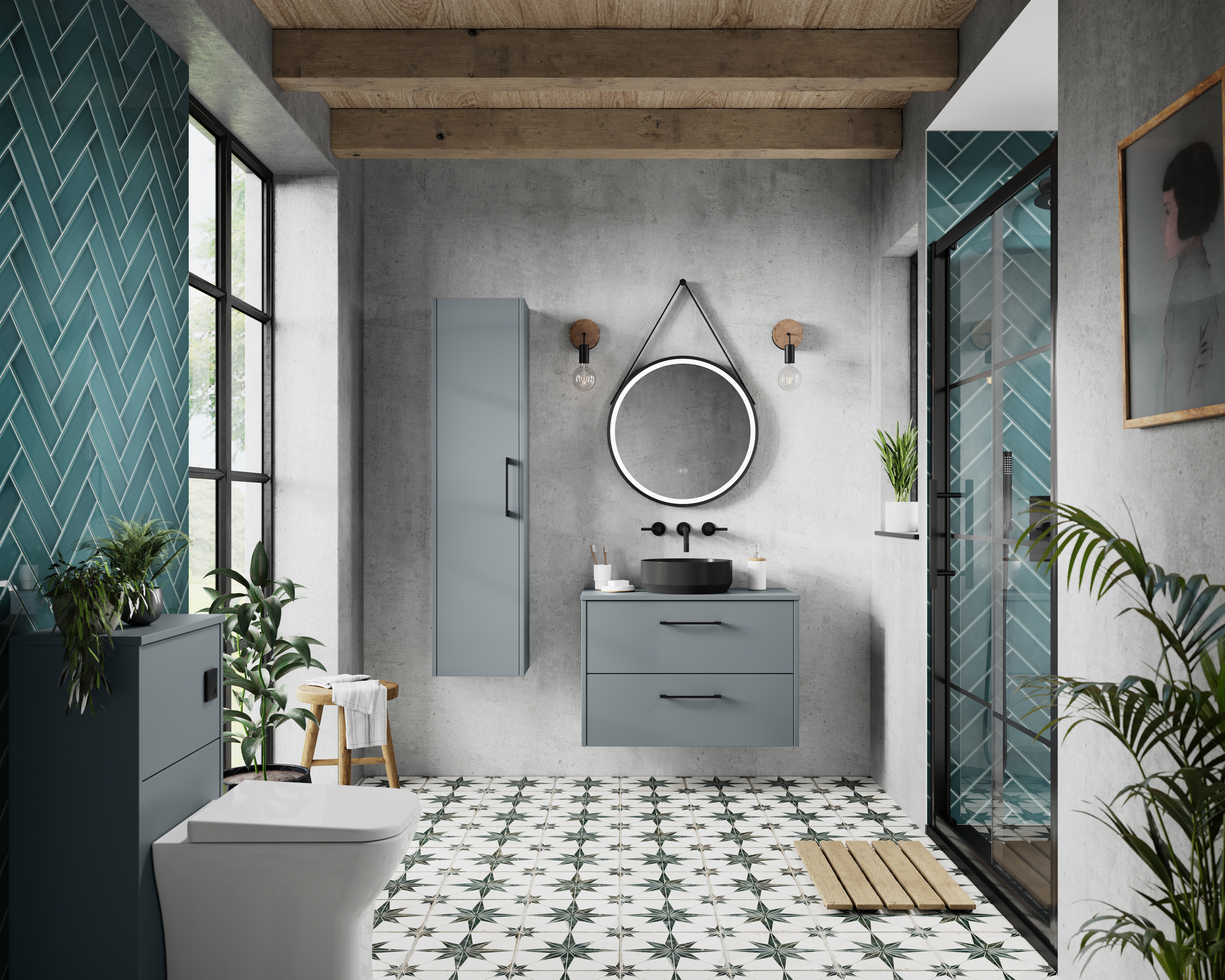 This calming coastal grey finish compliments any modern bathroom to create a designer look
