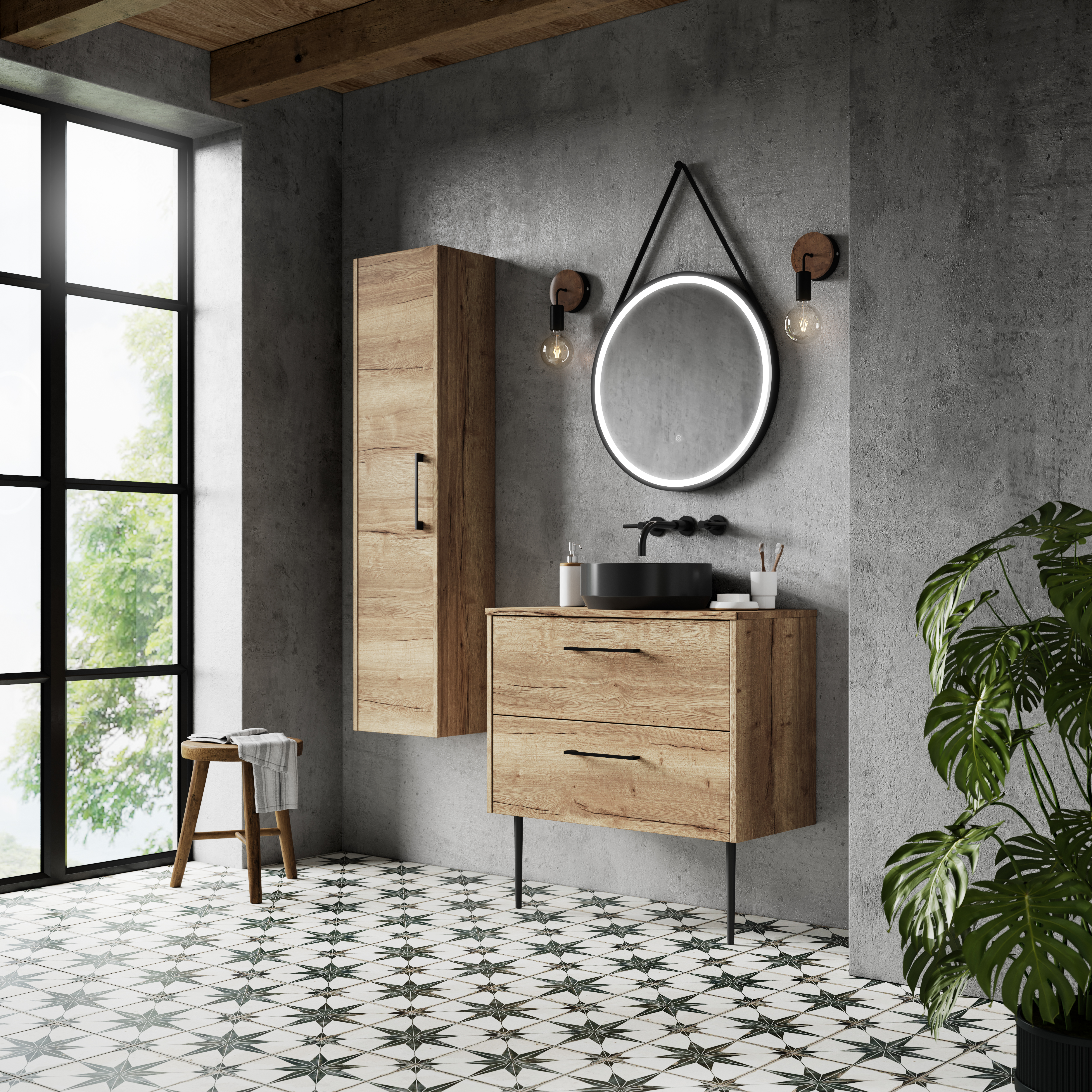This warming autumn oak finish compliments any modern bathroom to create a designer look