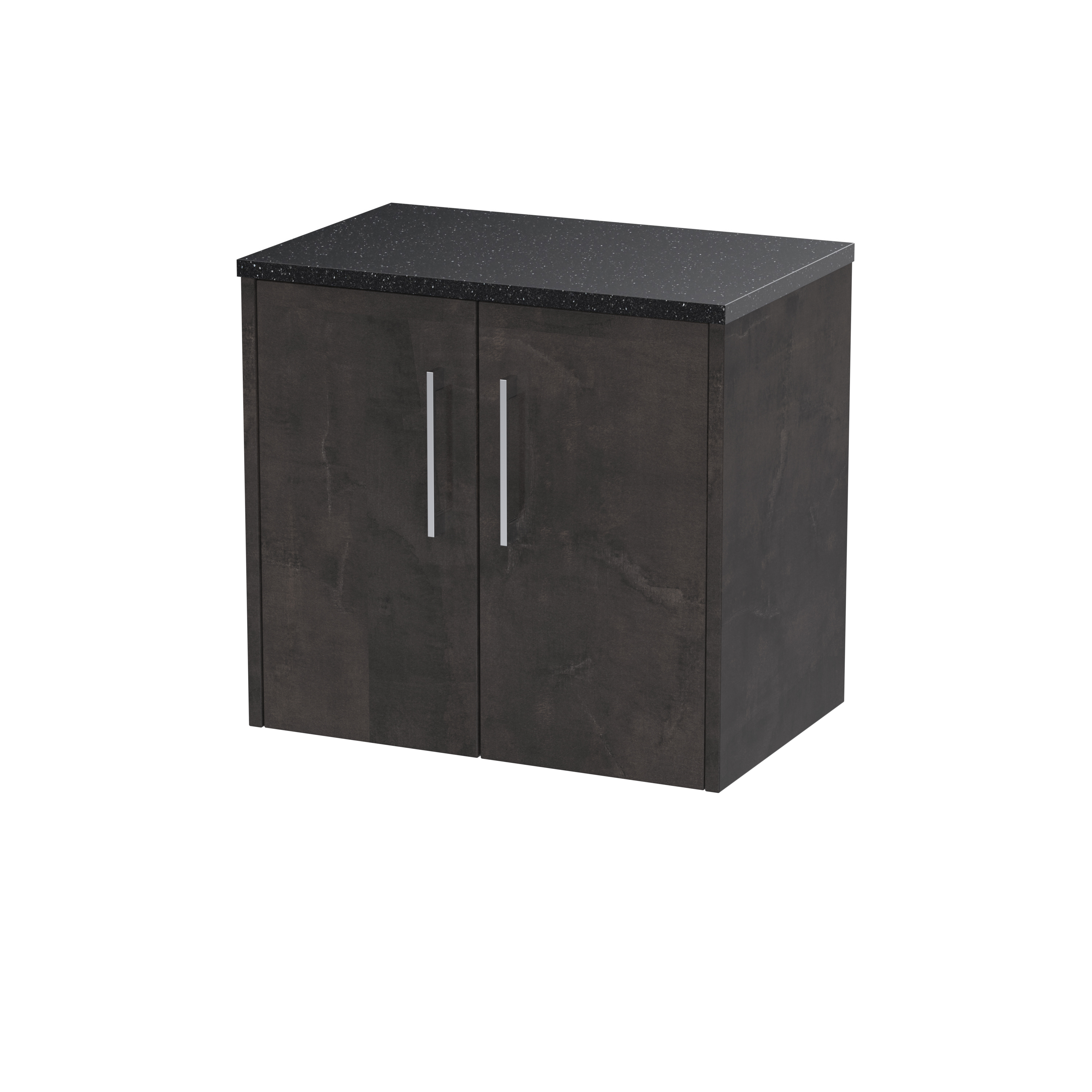 Hudson Reed Juno Wall Hung 2 Door Vanity Unit & Laminate Worktop, 600mm - Metallic Slate/Sparkle Black