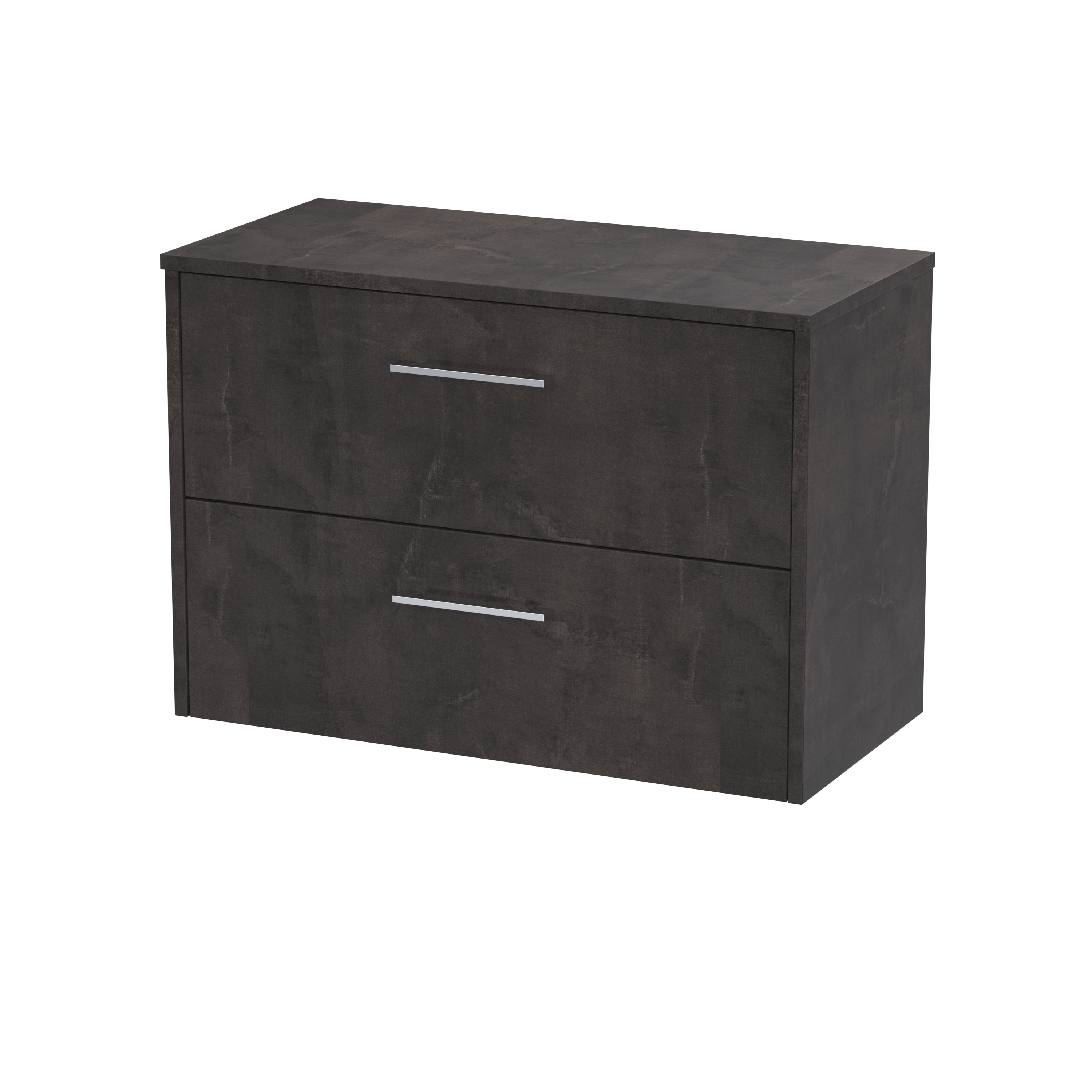 Hudson Reed Juno Wall Hung 2 Drawer Vanity Unit & Colour Match Worktop, 800mm - Metallic Slate