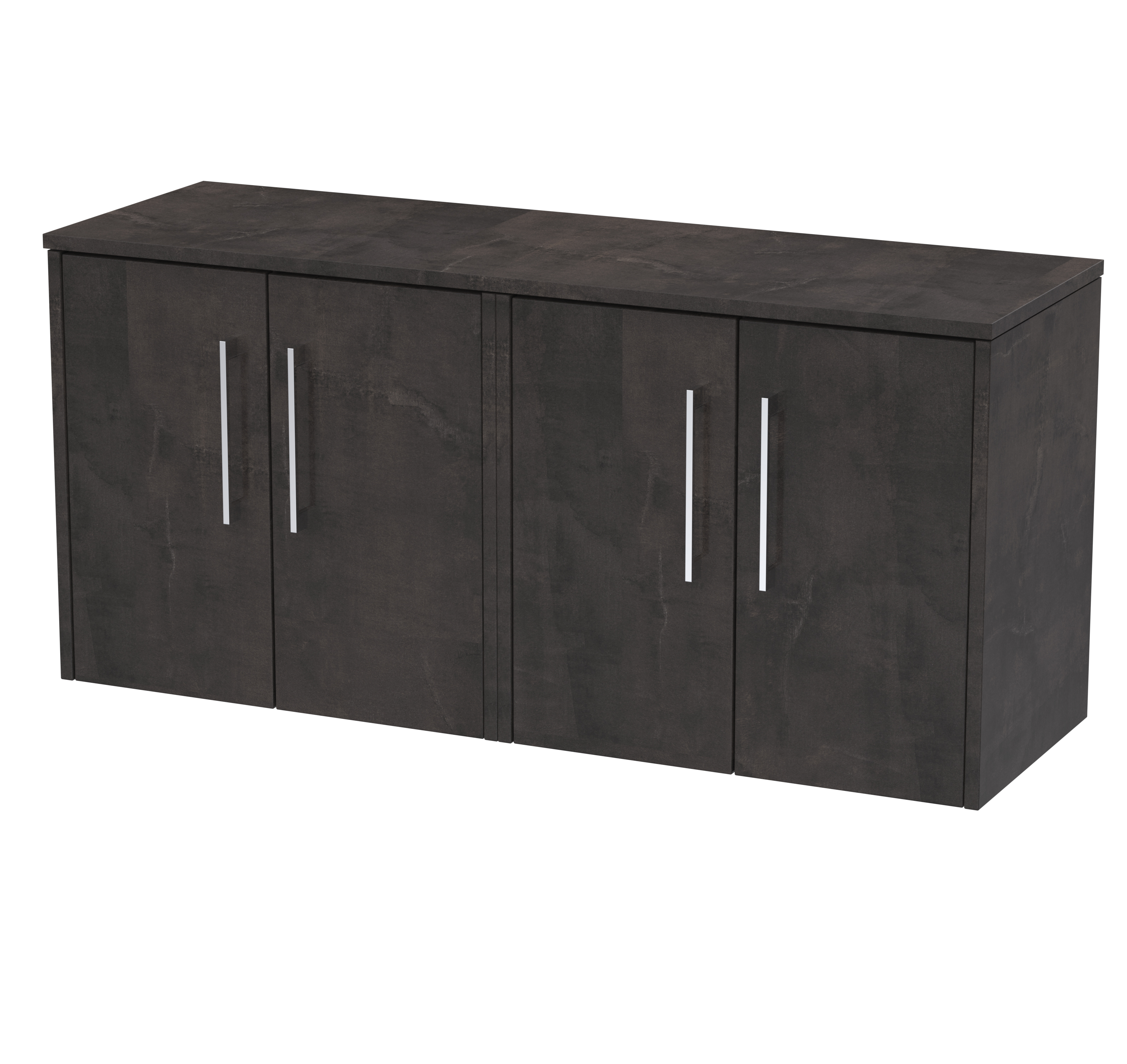Hudson Reed Juno Wall Hung 4 Door Vanity Unit & Colour Match Worktop, 1200mm - Metallic Slate