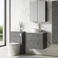 Athena Wall Hung 2 Drawer Vanity With Grey Worktop 600mm