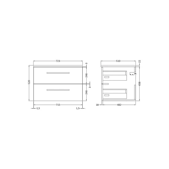 Quartet Wall Hung 2 Drawer Cabinet with Sparkling Black Worktop 720mm