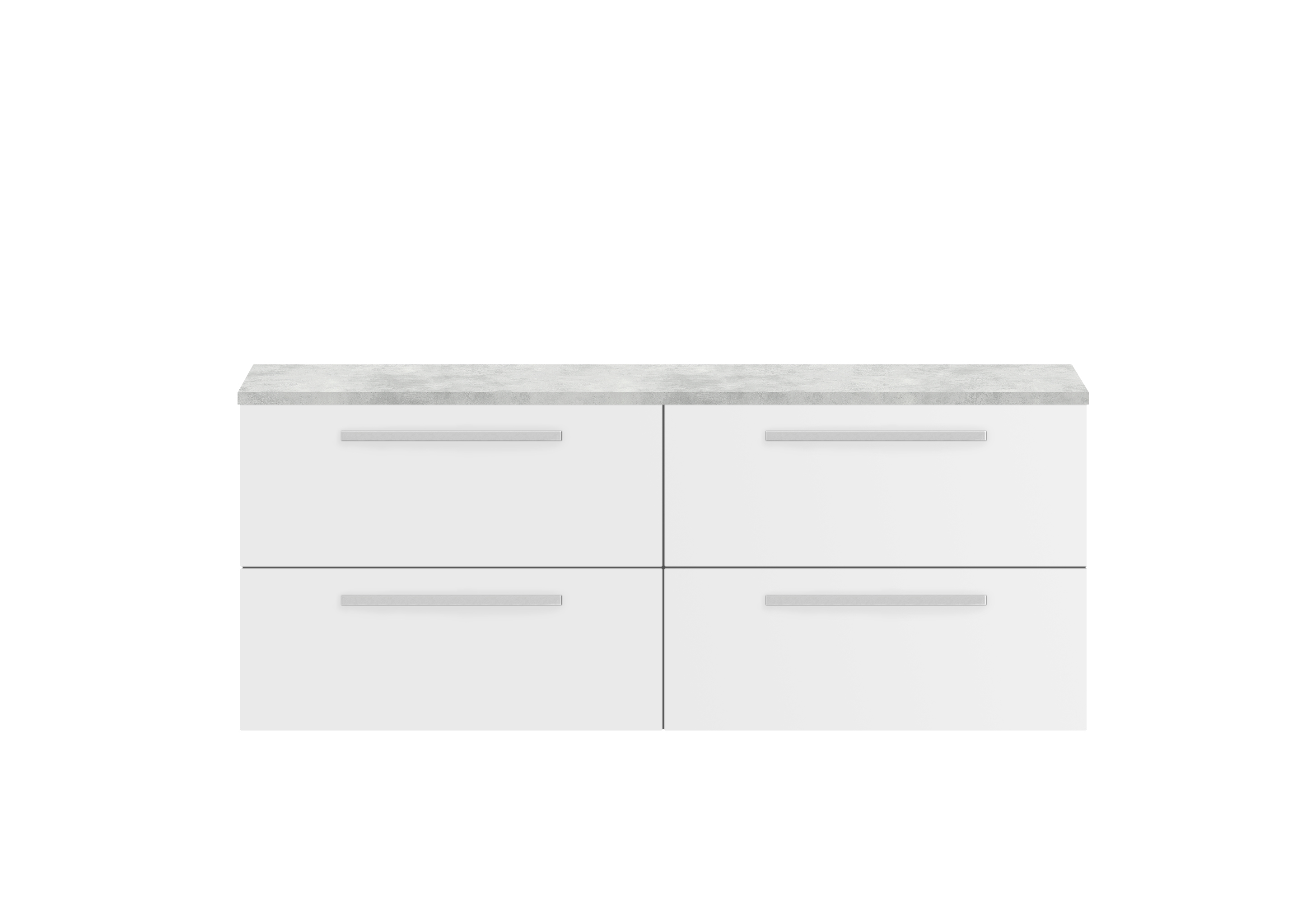 Hudson Reed Quartet Wall Hung 4 Drawer Double Cabinet with Grey Worktop 1440mm - Gloss White