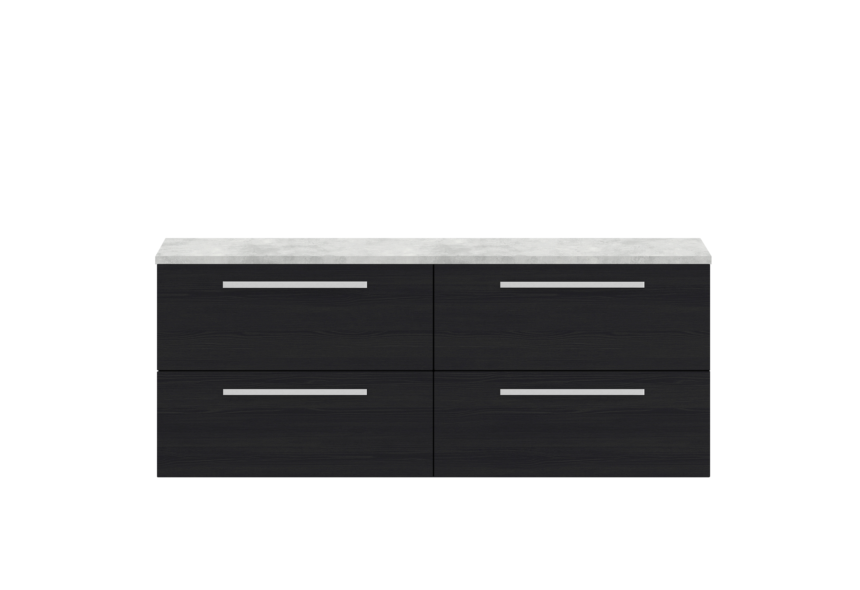 Hudson Reed Quartet Wall Hung 4 Drawer Double Cabinet with Grey Worktop 1440mm - Hacienda Black