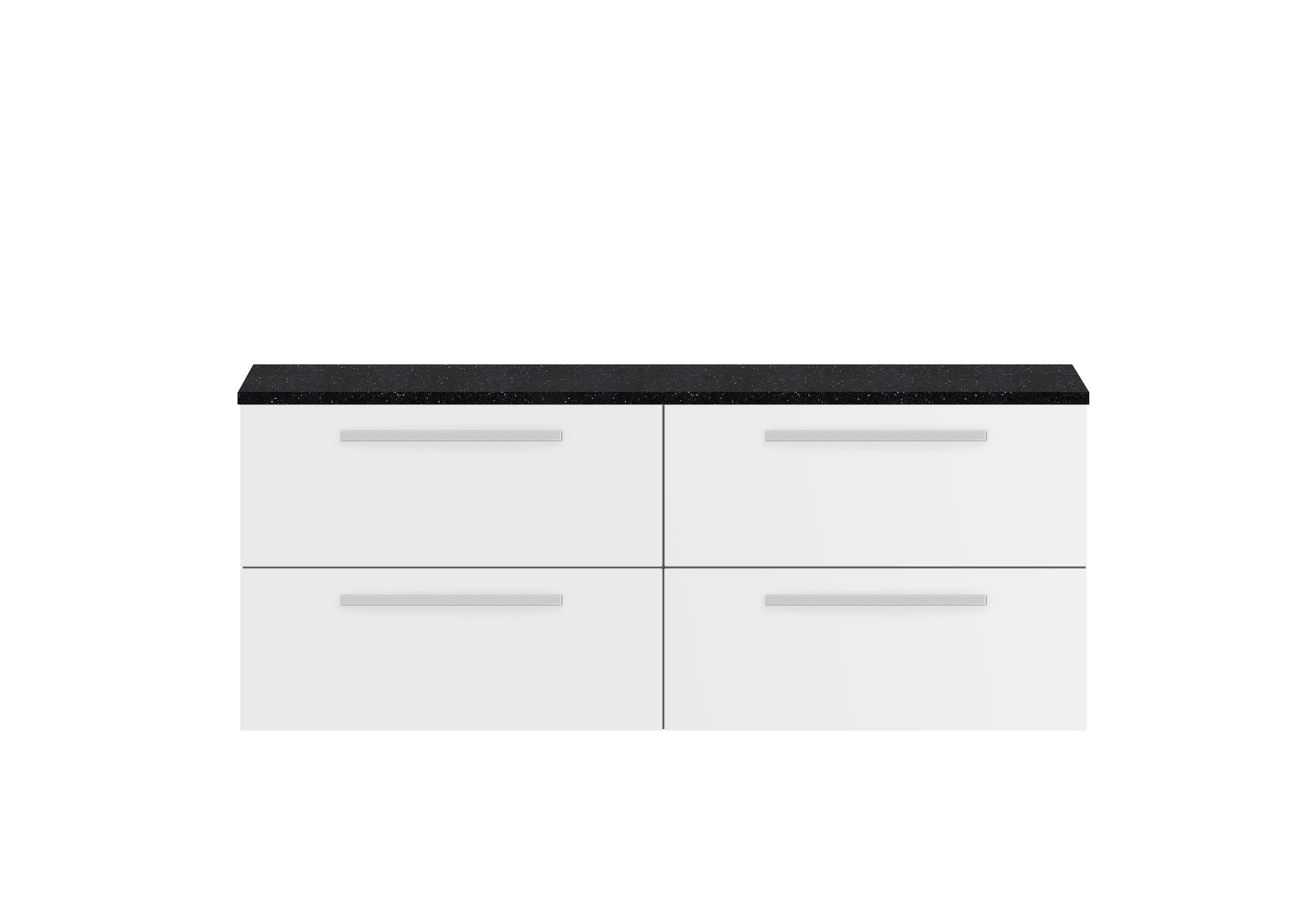 Hudson Reed Quartet Wall Hung 4 Drawer Double Cabinet with Sparkling Black Worktop 1440mm - Gloss White