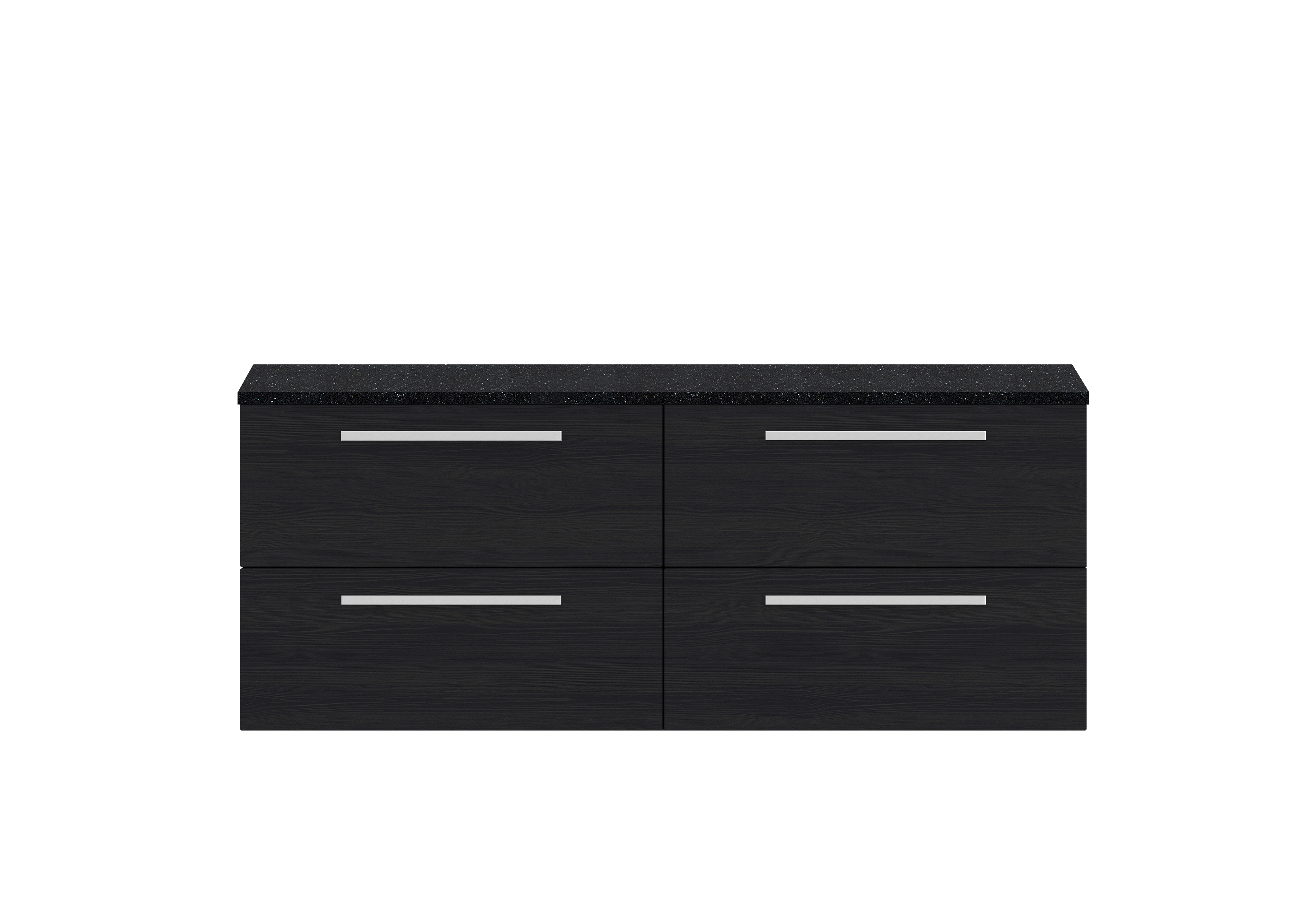 Hudson Reed Quartet Wall Hung 4 Drawer Double Cabinet with Sparkling Black Worktop 1440mm - Hacienda Black