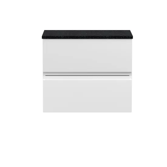Hudson Reed Urban Wall Hung 2 Drawer Vanity Unit with Sparkling Black Worktop 600mm - Satin White