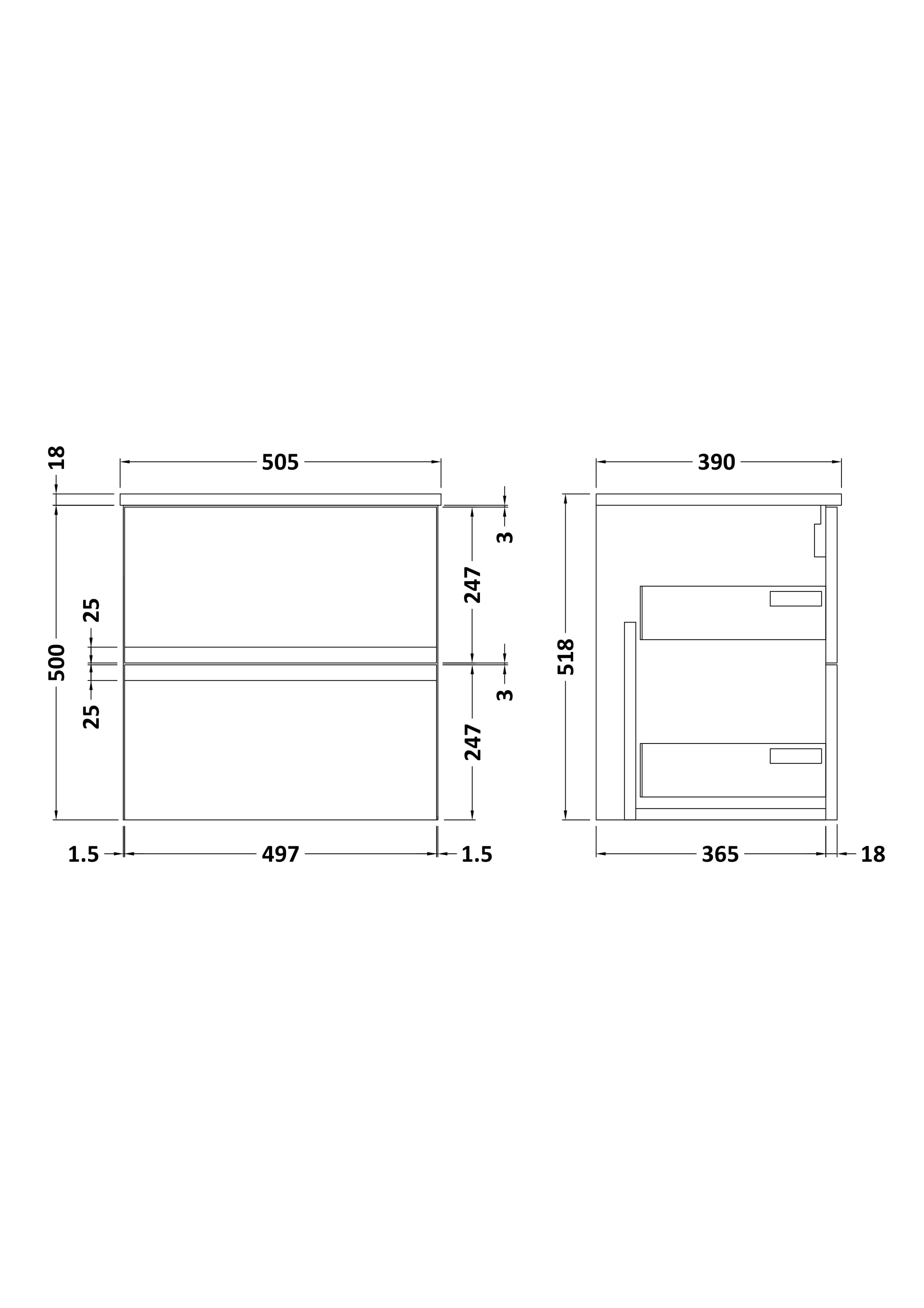 Urban Wall Hung 2 Drawer Vanity Unit with Worktop 500mm