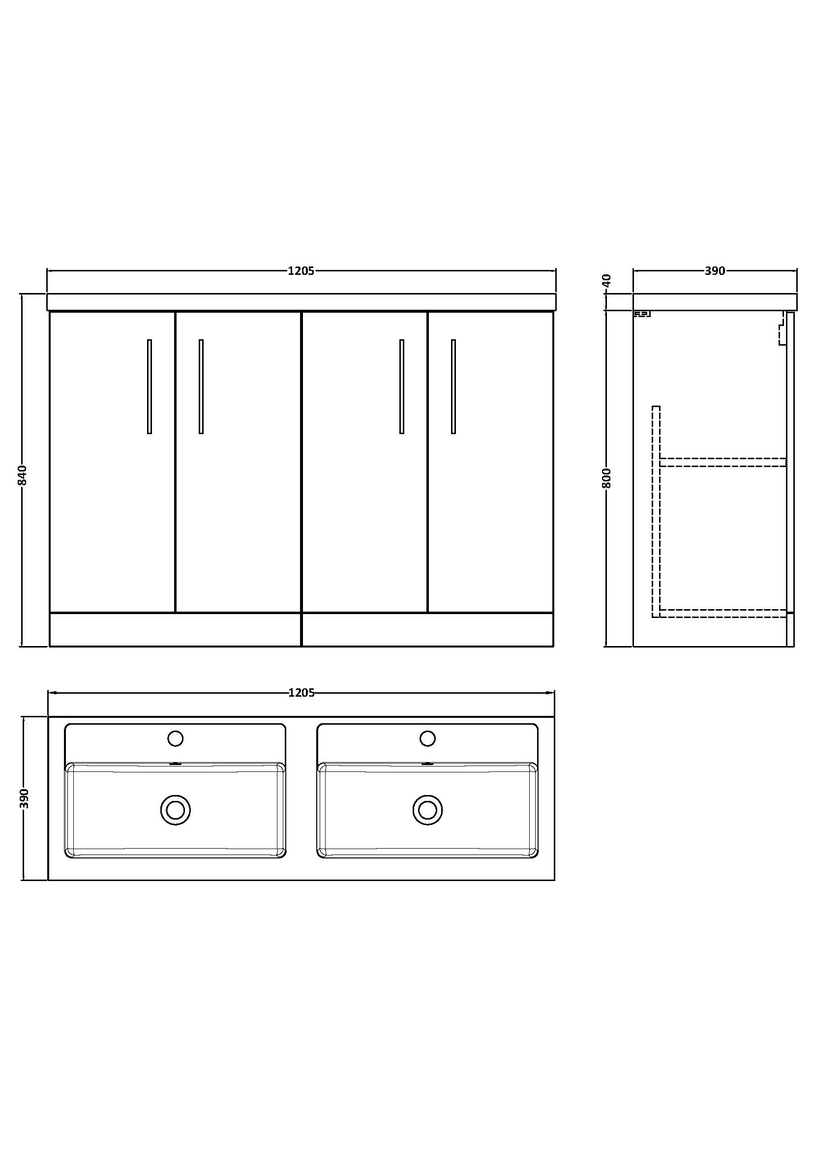 Arno 1200mm Floor Standing 4 Door Vanity & Double Basin 1