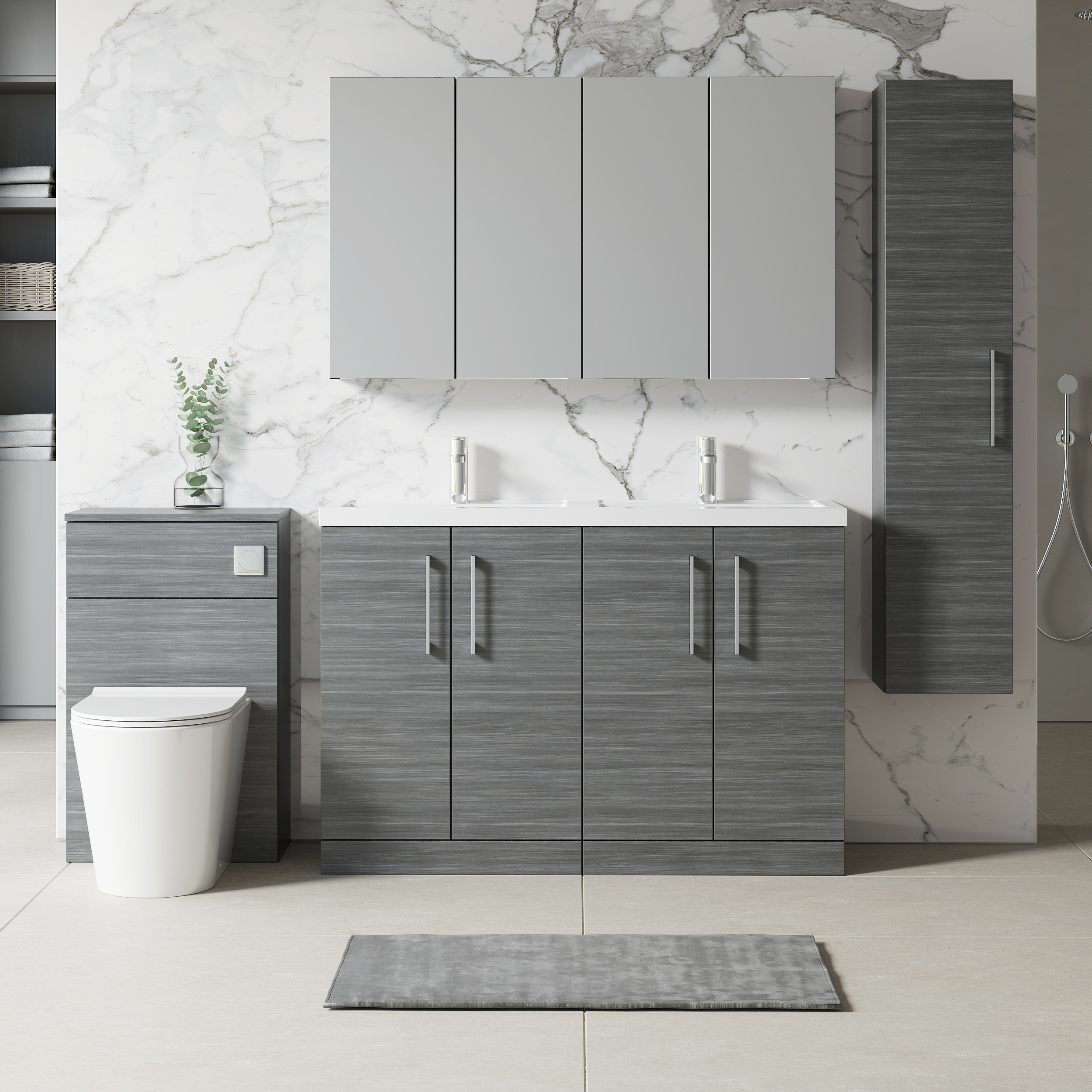 Nuie Arno 1200mm Floor Standing 4 Door Vanity & Double Basin 1 - Anthracite Woodgrain